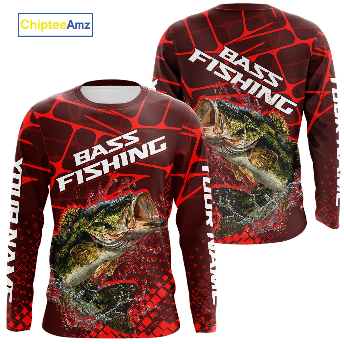 Largemouth Bass Fishing, Fishing Shirt Scale Custom Name Long Sleeves, Fishing Gift |Red NHT391