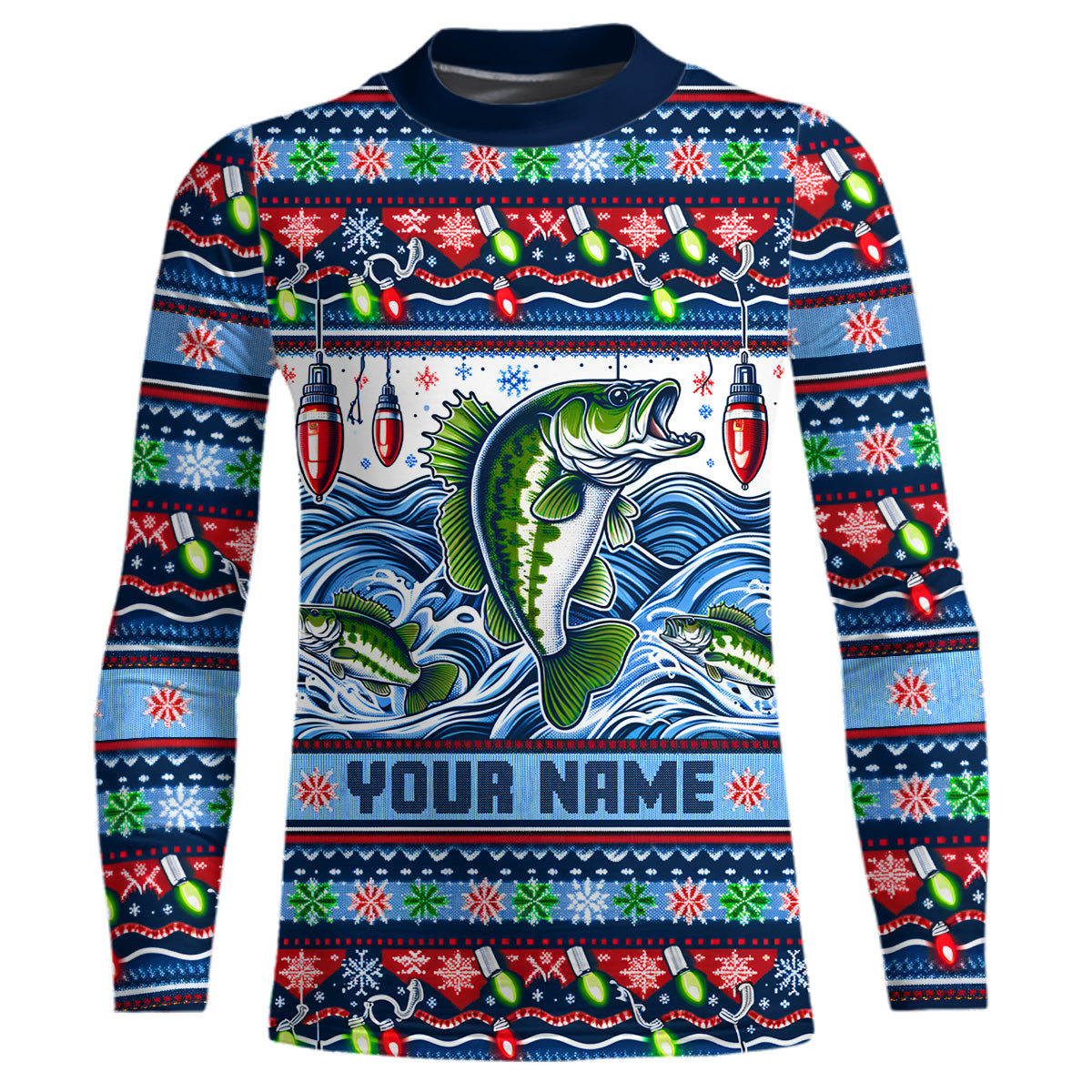 Bass Fishing Ugly Sweater Pattern Christmas Custom Fishing Shirts Personalized Fishing Gifts IPHW5561