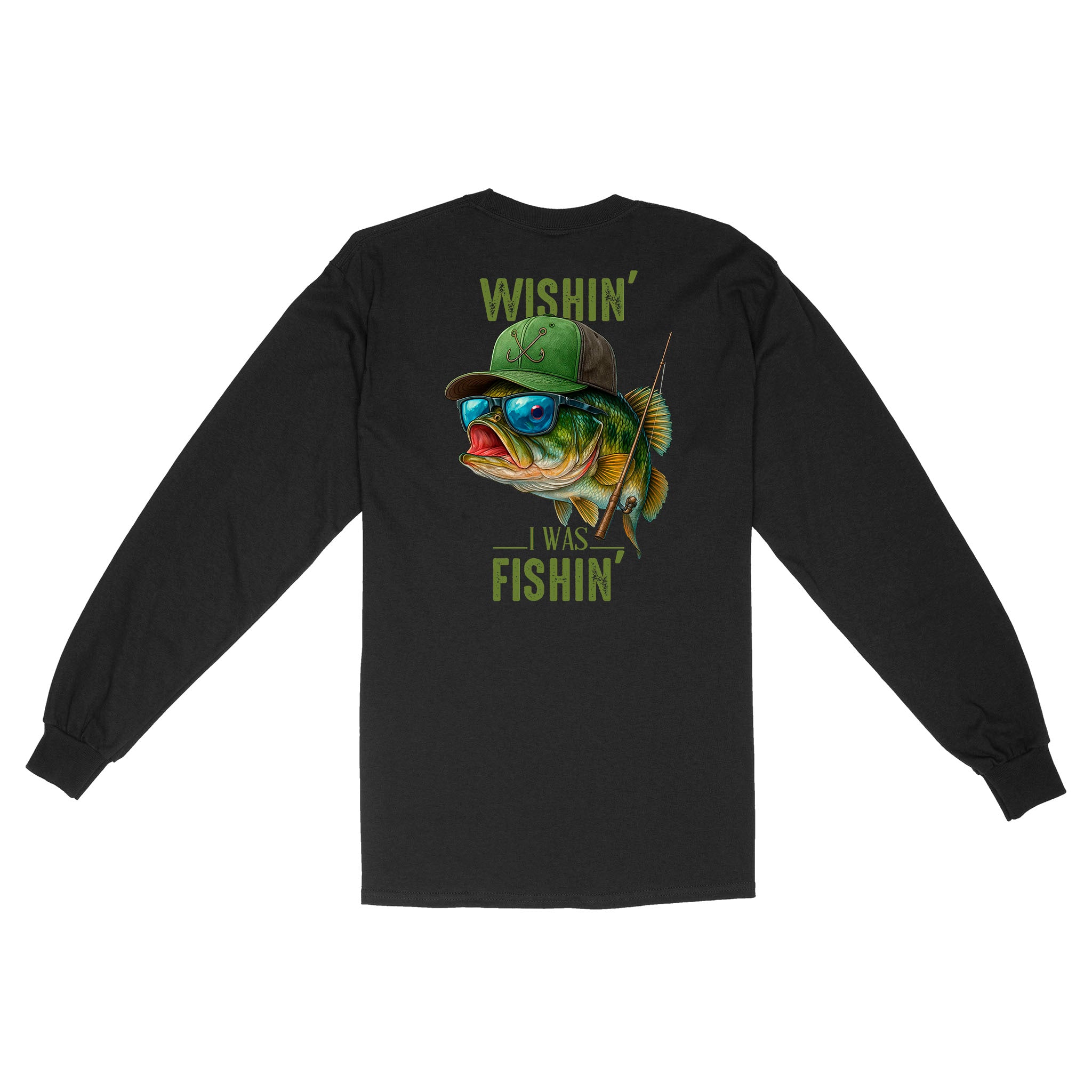 Funny Fishing Shirt Wishin' I Was Fishin Custom Name funny Bass fishing Long Sleeve D03 NQS9898
