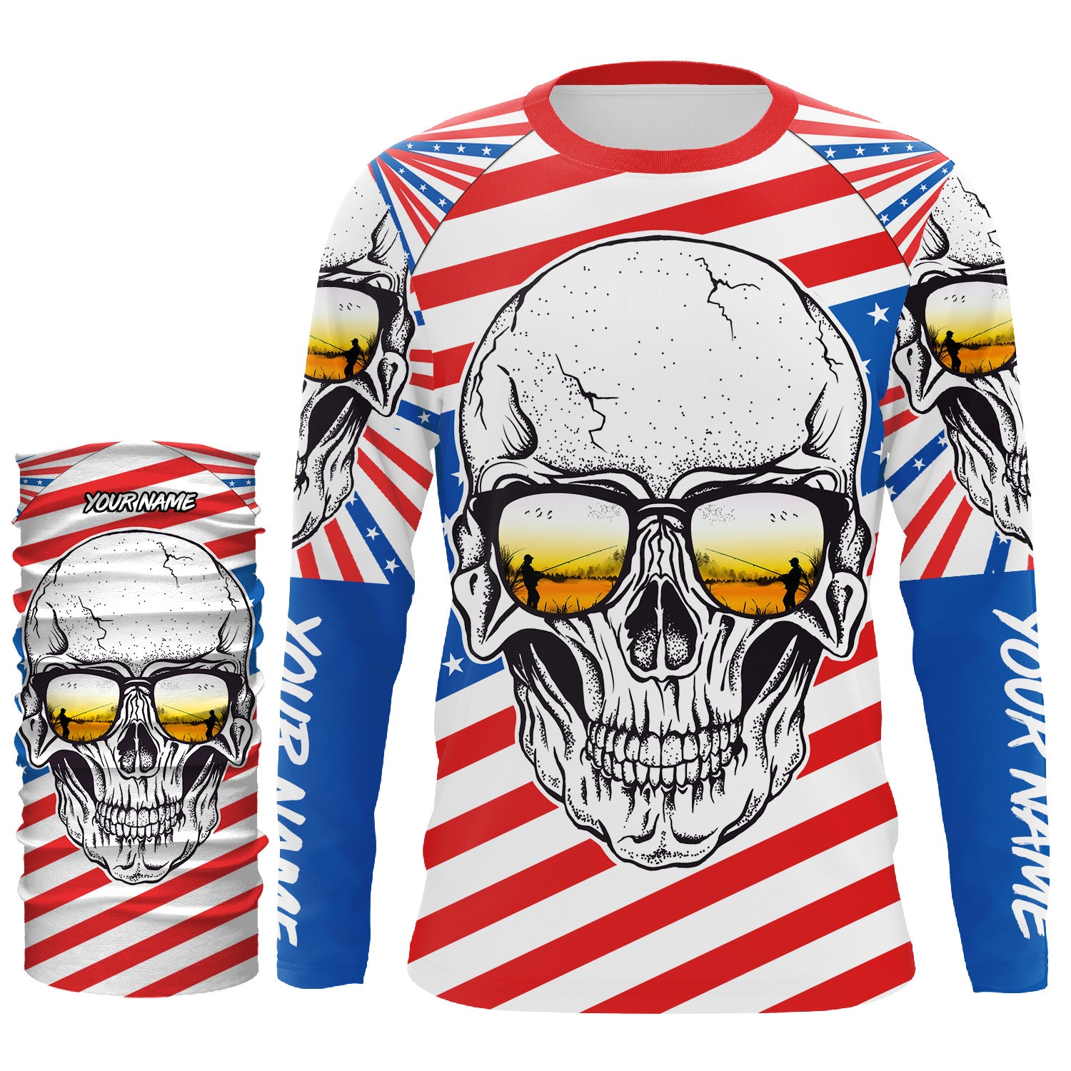 American Flag Skull Fishing Custom UV Long Sleeve Performance Fishing Shirts, Gift for Fisherman TTN89
