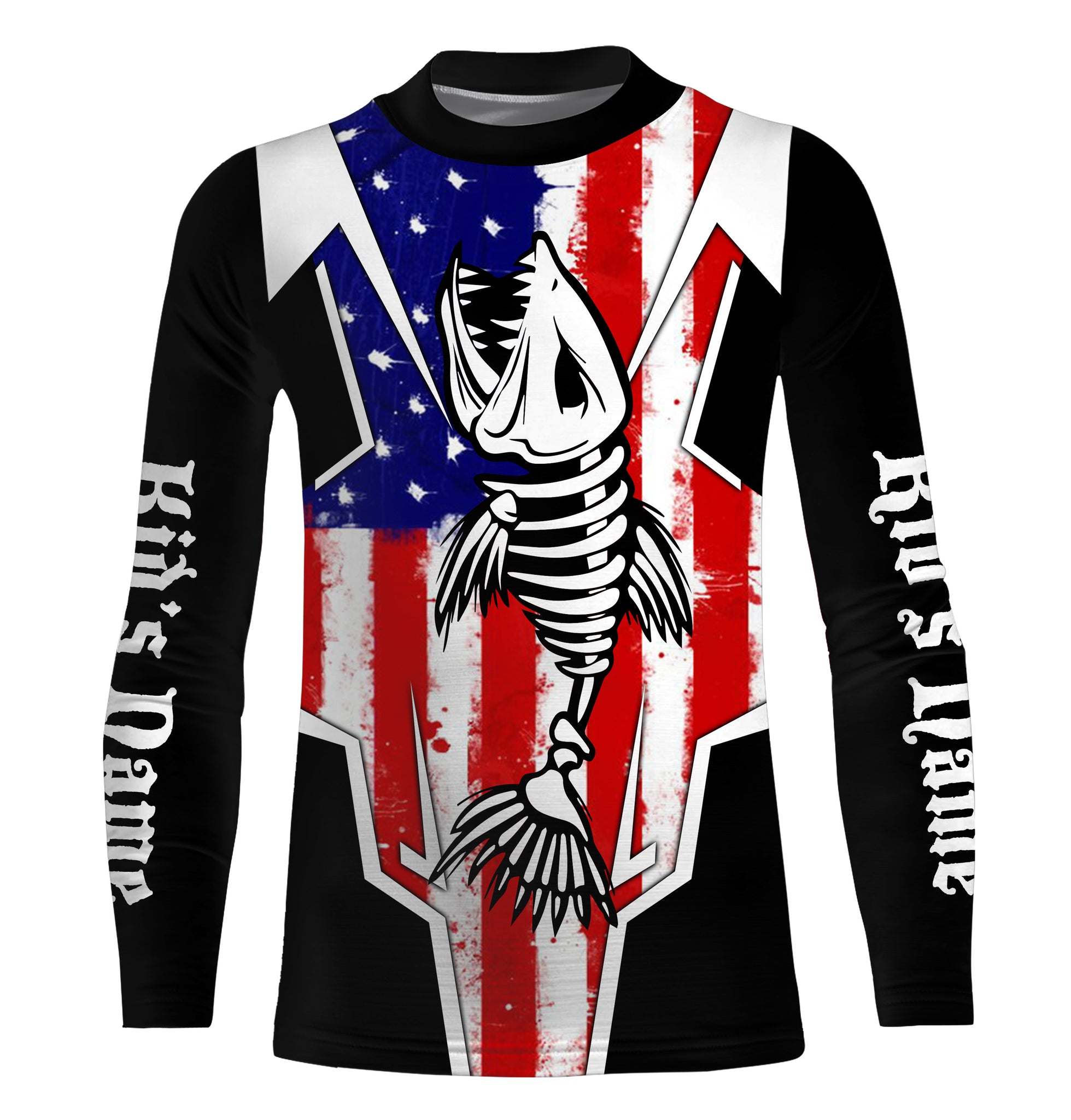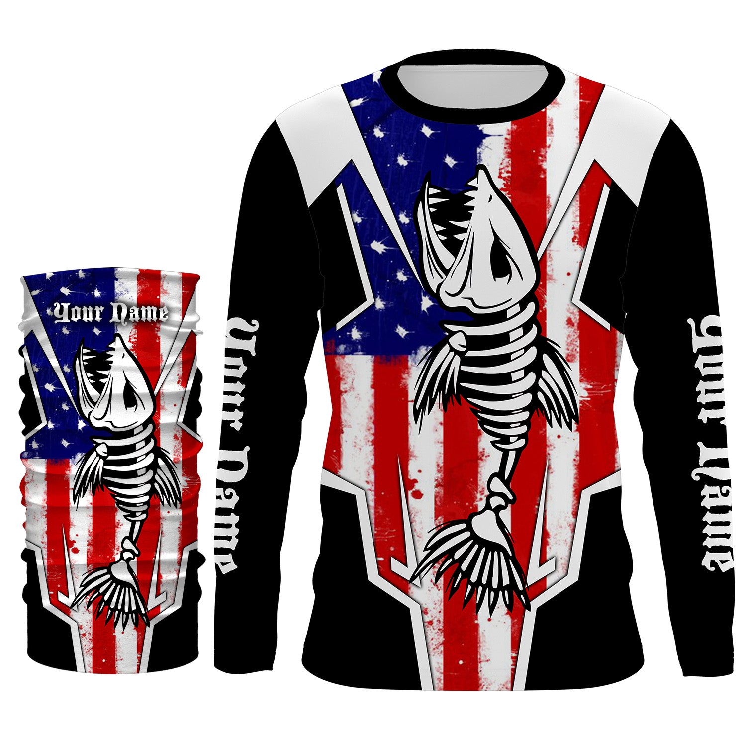 Bass Fish Skeleton American Flag Patriotic UV Protection Fishing Shirt Personalized Fishing Jerseys TTN25
