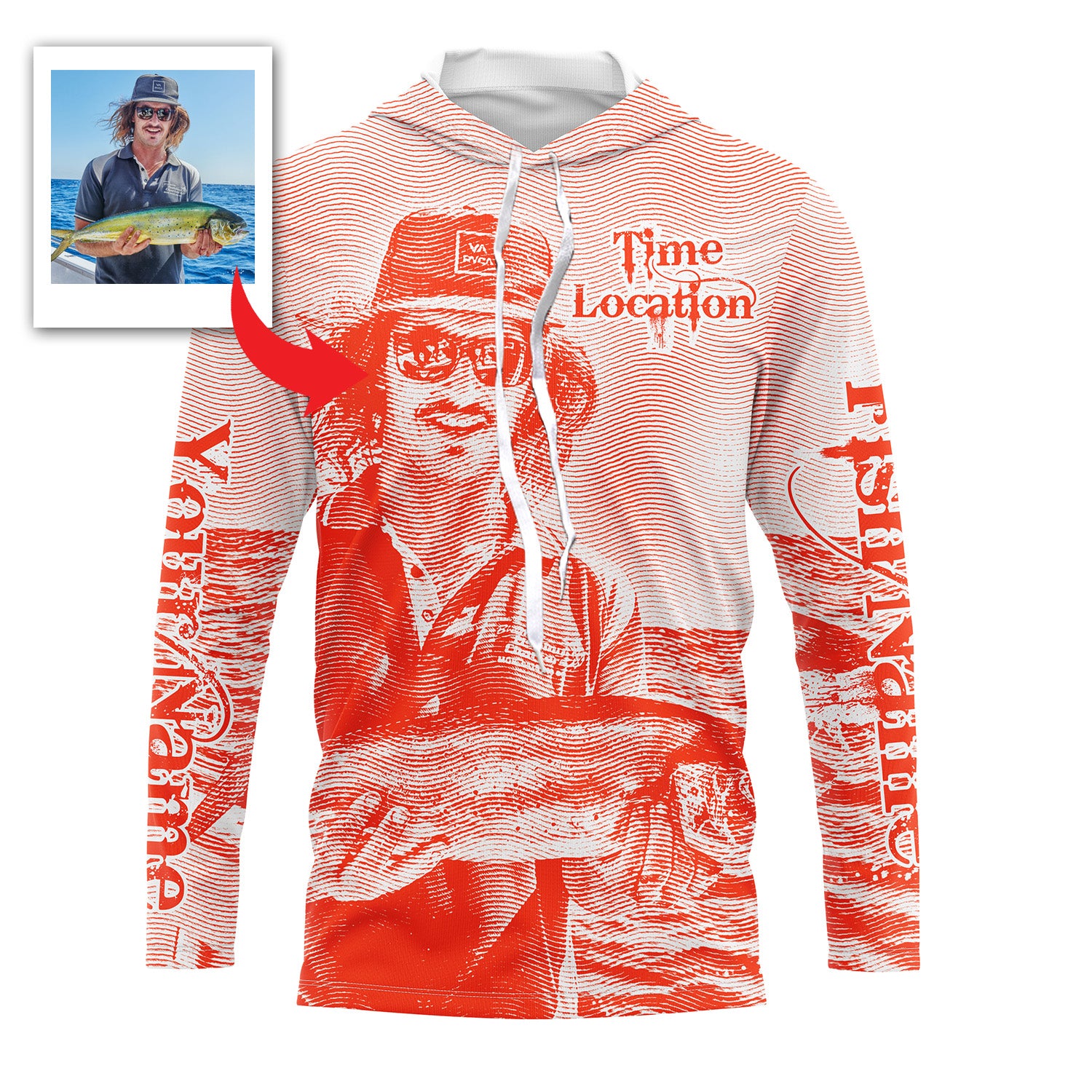 Fishing Shirt Custom Name, Image, Time, Location 3D UV protection Shirts UPF 30+ Fishing gift| Red - TMTS050