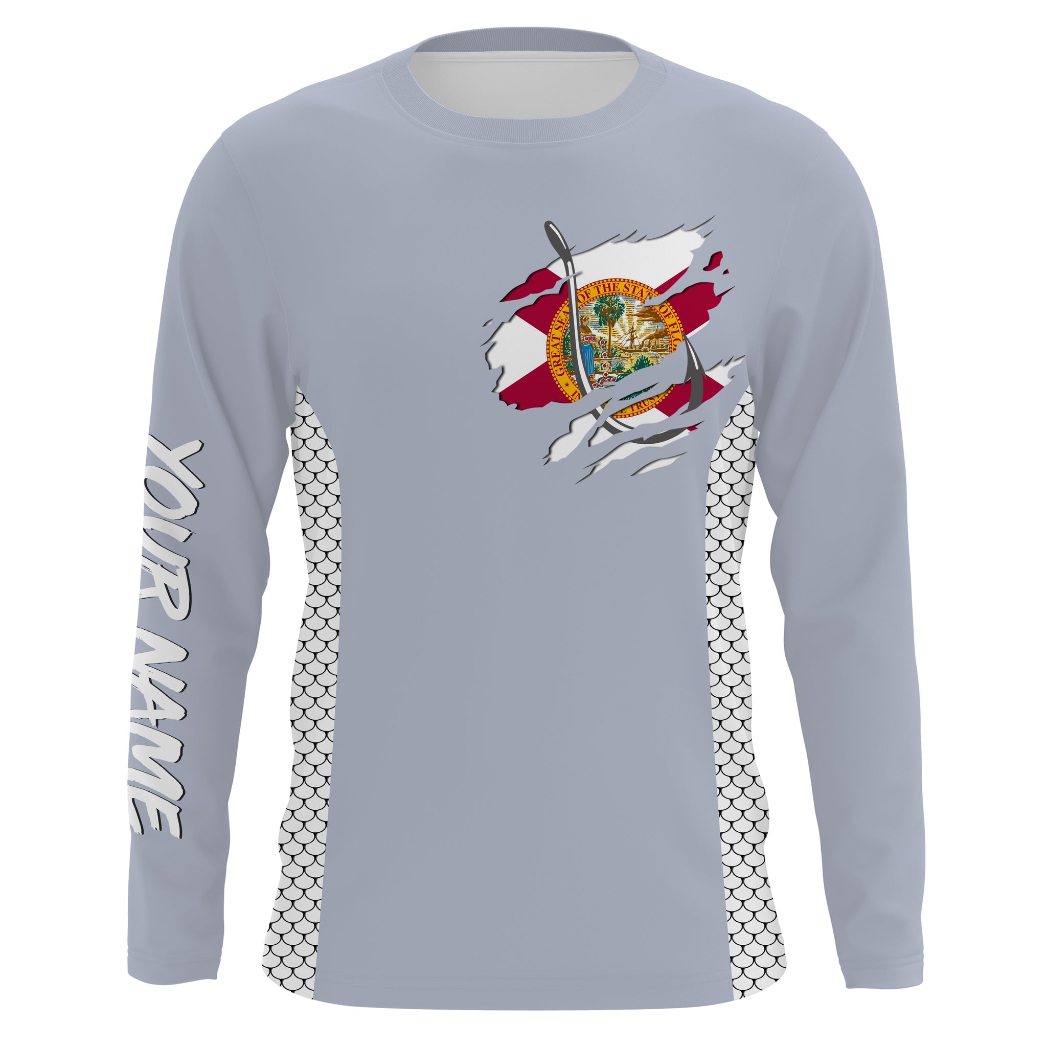 Florida Flag Fish Hook Custom UV Protection Long Sleeve performance Fishing Shirts TTN70