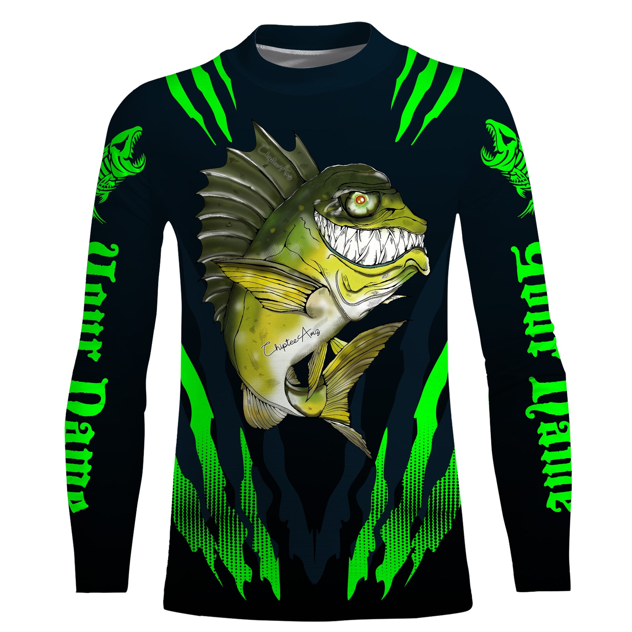 Angry Bass Fishing Custom Long sleeve Fishing Shirts, Bass fish reaper fishing jerseys | green IPHW3374