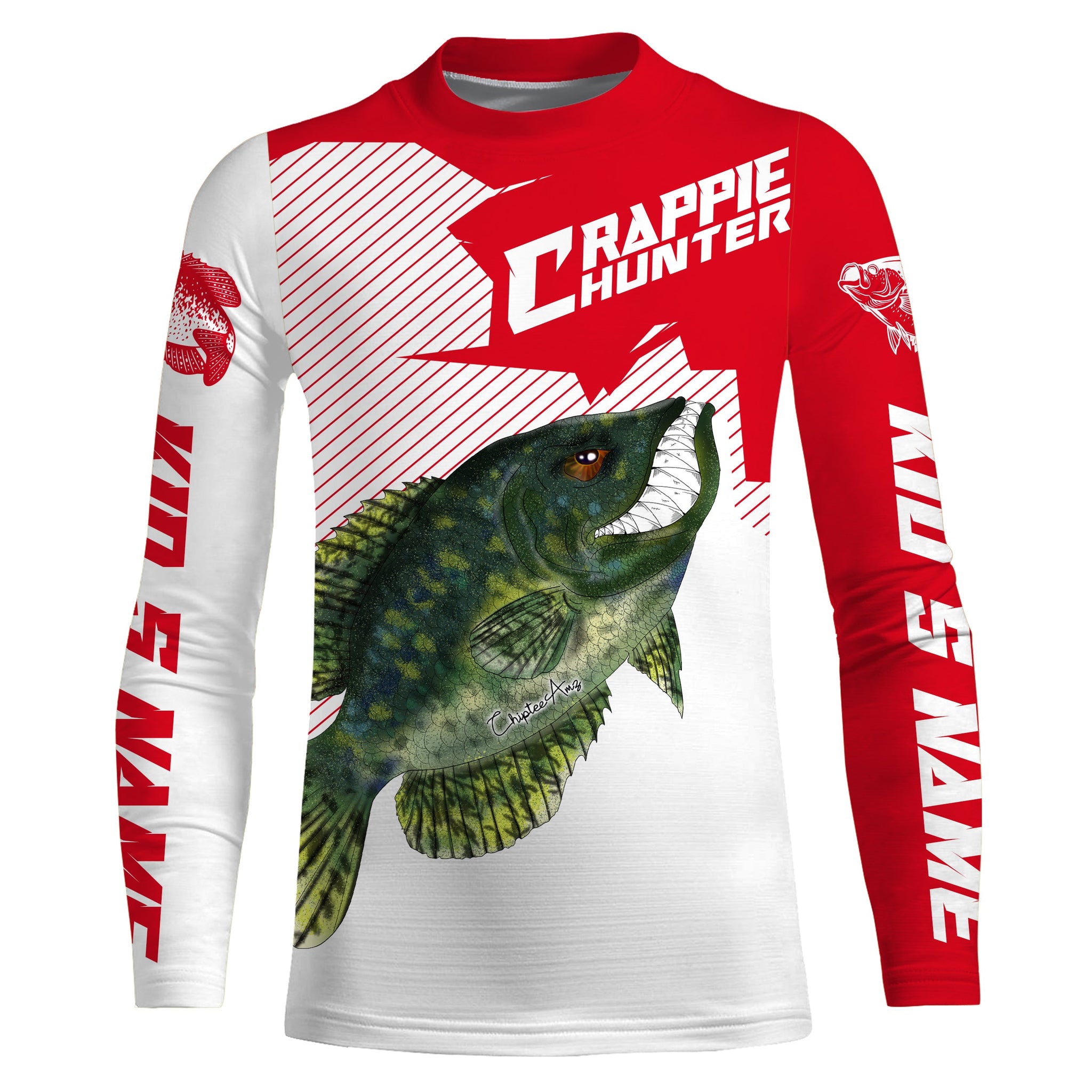 Angry Crappie Custom Long sleeve performance Fishing Shirts, Crappie hunter Fishing jerseys | red IPHW3380