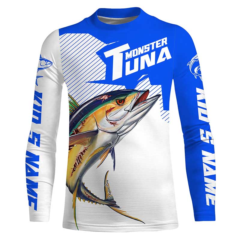 Monster Tuna Fishing jerseys, Yellowfin Tuna fish skull Custom Long sleeve Fishing Shirts | blue IPHW3532