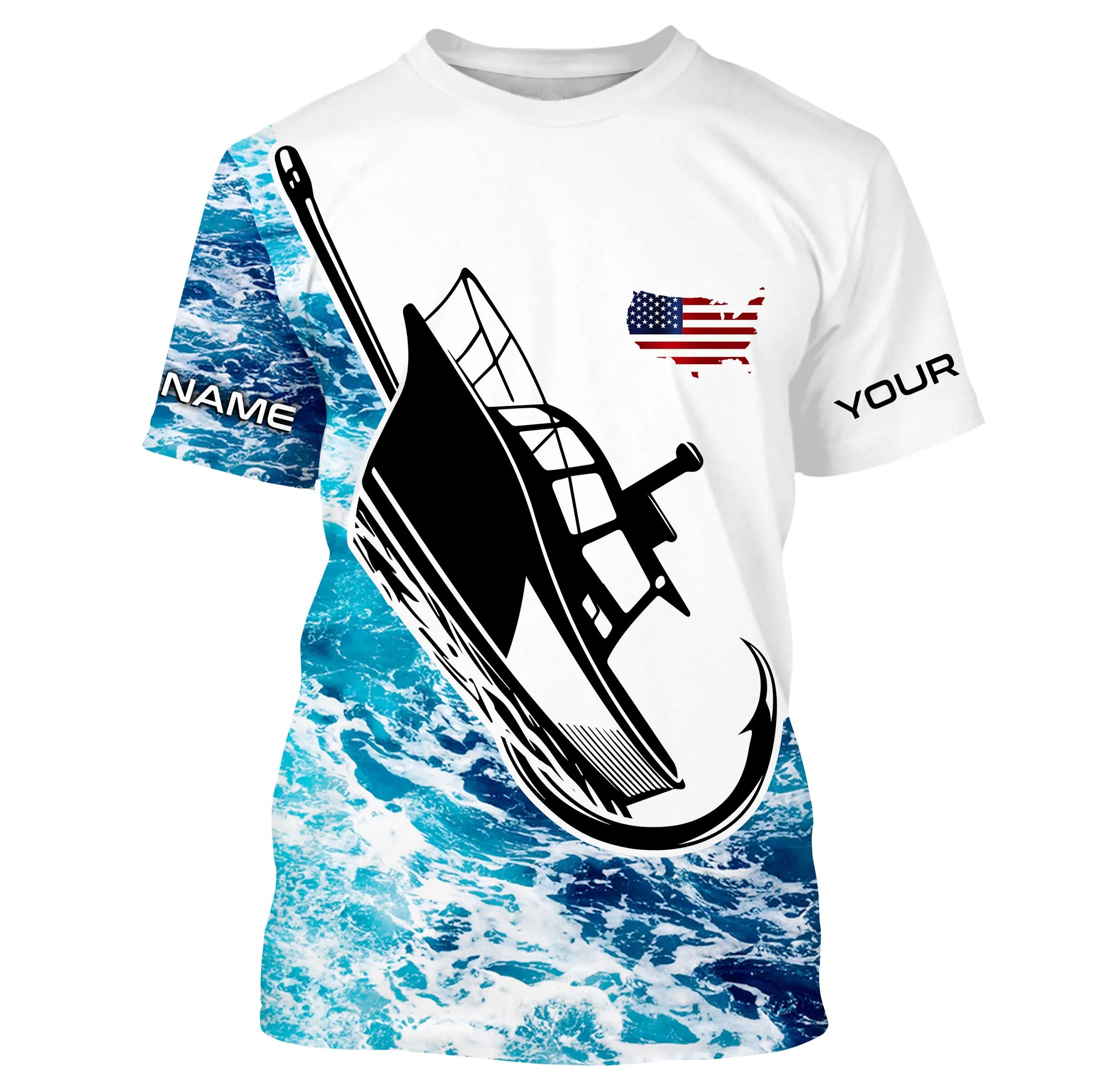 Custom Deep Sea Fishing Shirts With Boat Name, American Flag Saltwater Fishing Shirts IPHW4361