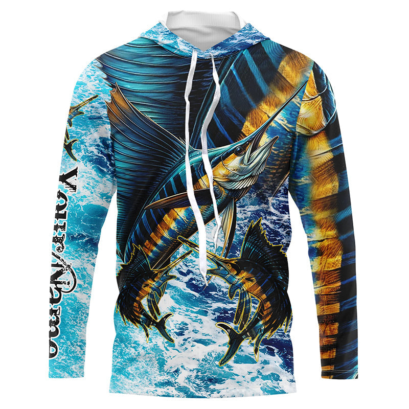 Sailfish fishing scales blue sea water camo Custom UV protection performance long sleeve fishing shirt NQS7097