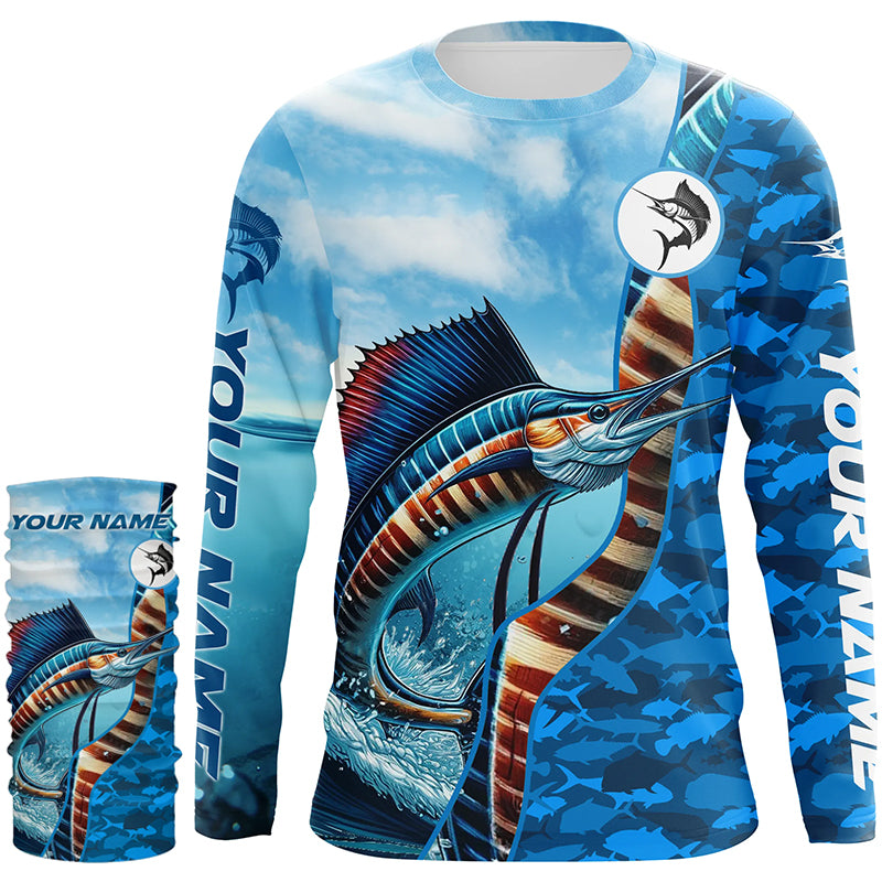 Sailfish saltwater fishing Custom sea blue camo UV Protection Fishing shirts, sailfish fishing Jerseys NQS5630