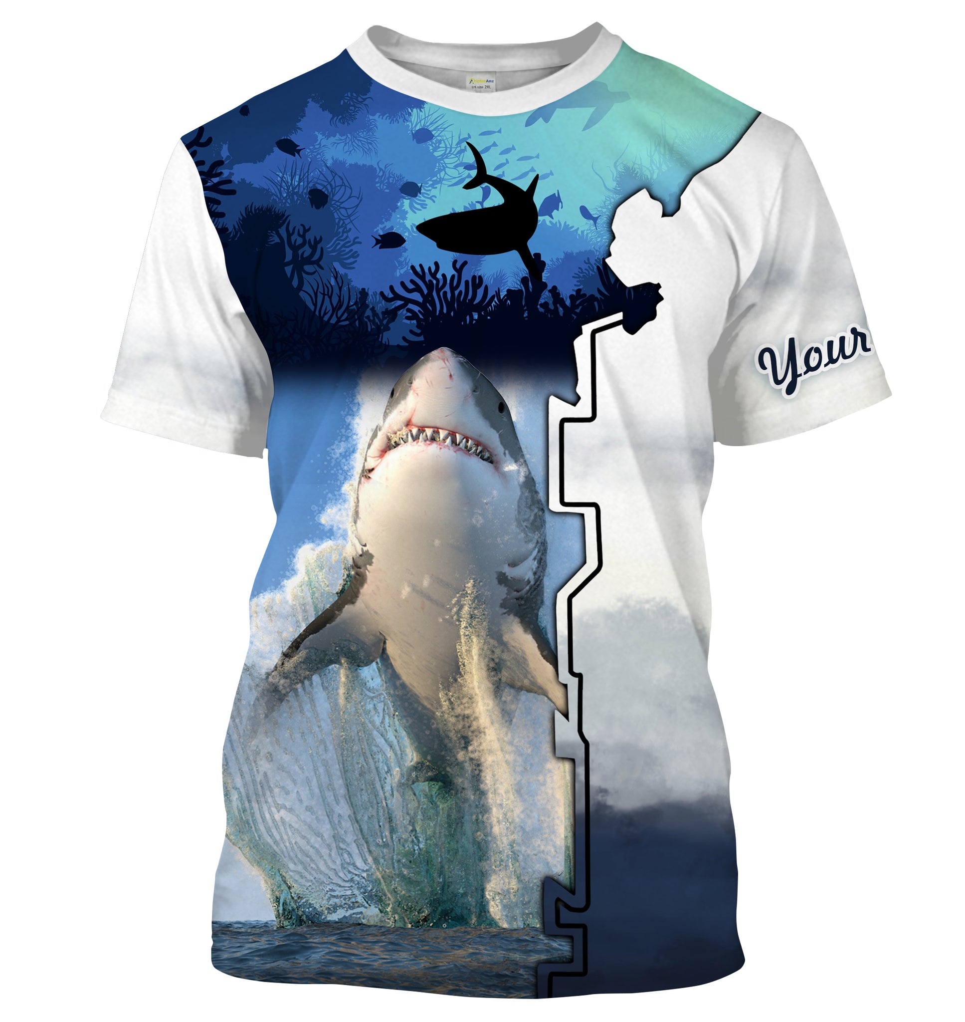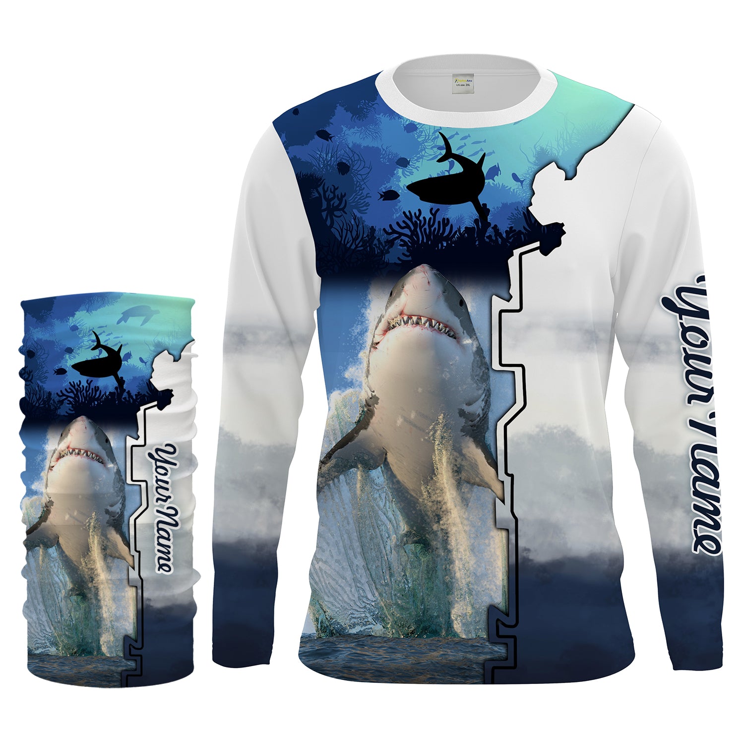 Shark Fishing UV protection Customize name long sleeves fishing shirts UPF 30+, Personalized Fishing Gift NQS1841
