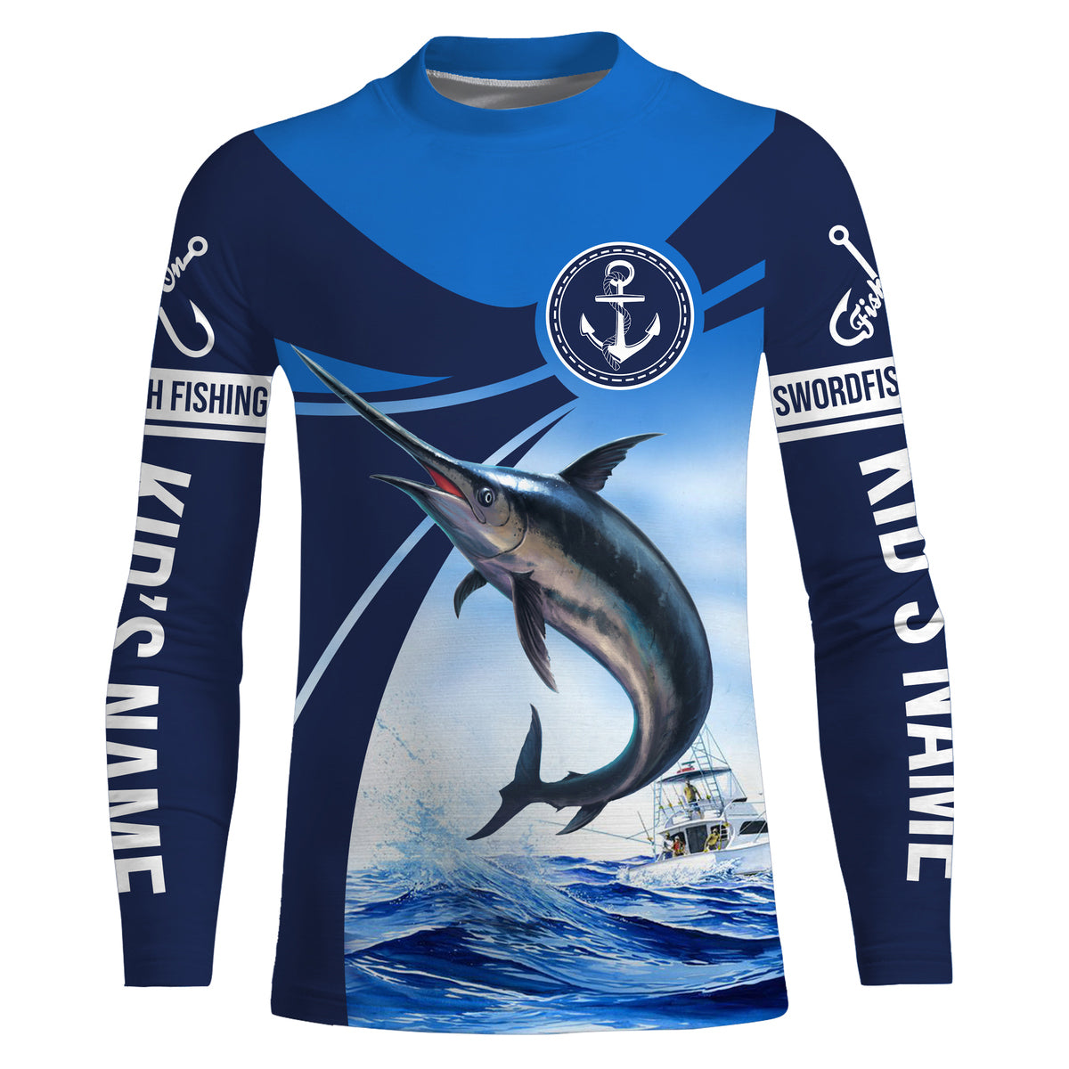 Swordfish fishing blue sea underwater ocean Custom Name performance long sleeve fishing shirt NQS3778