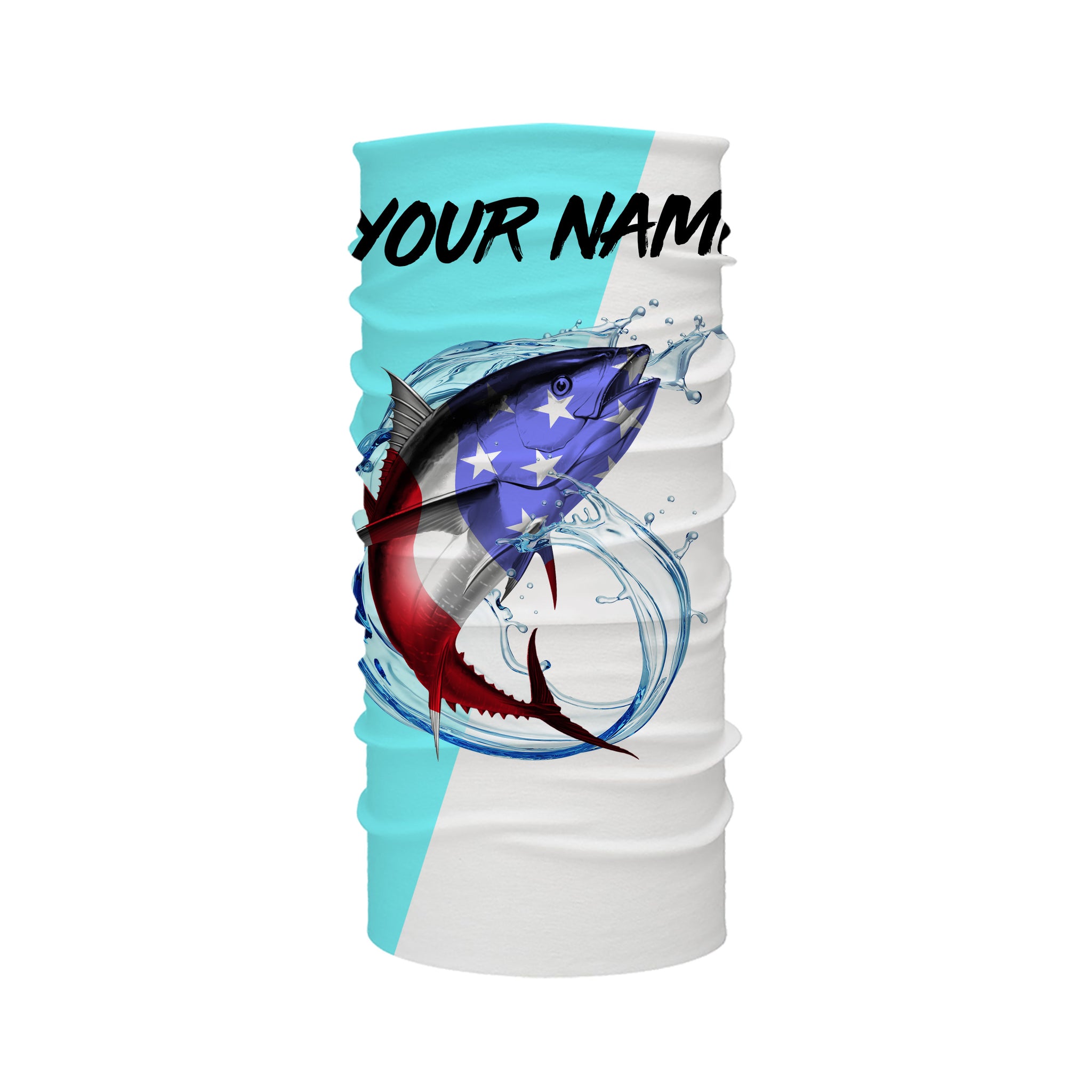 Tuna fishing American flag Custom Name long sleeve performance fishing shirt jerseys | Bright Sky Blue NQS3814