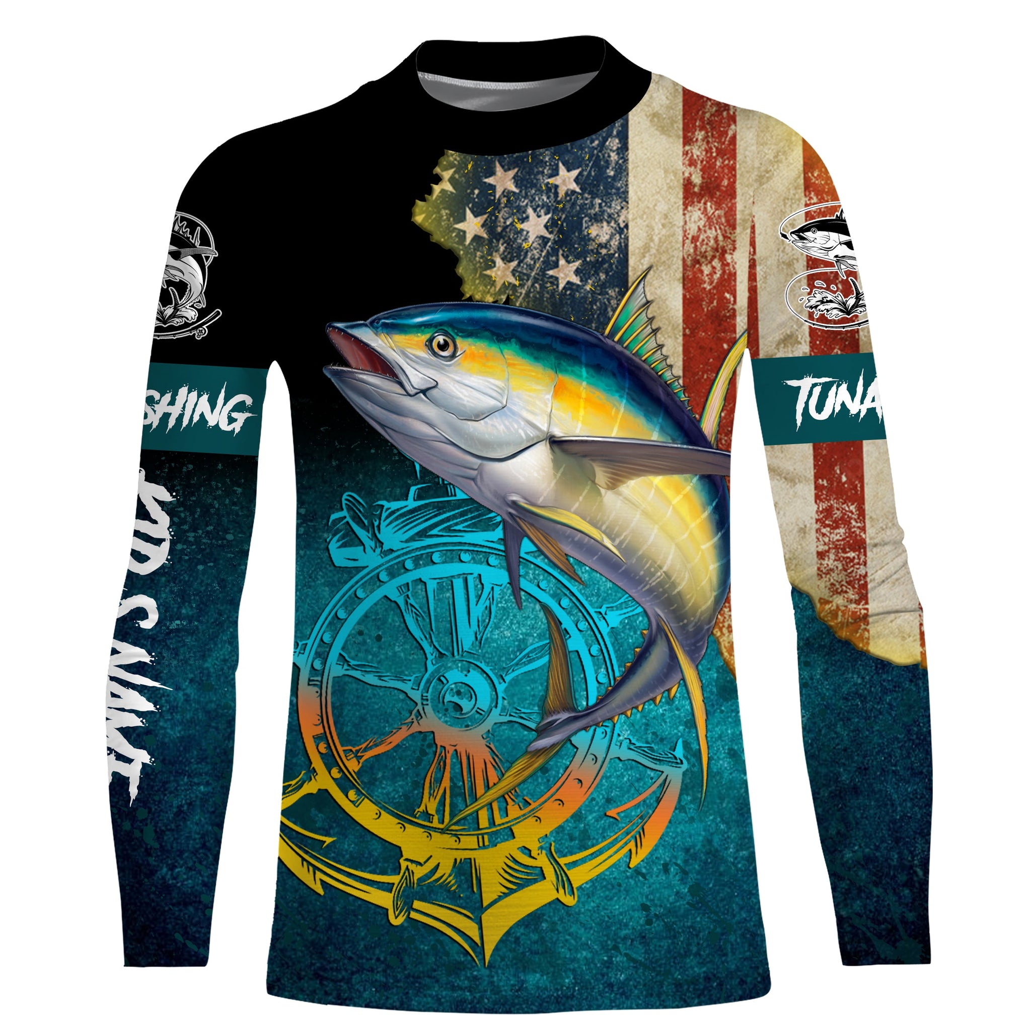 Tuna fishing American flag patriotic Custom upf fishing Shirts jersey, custom fishing shirts with hood NQS3103