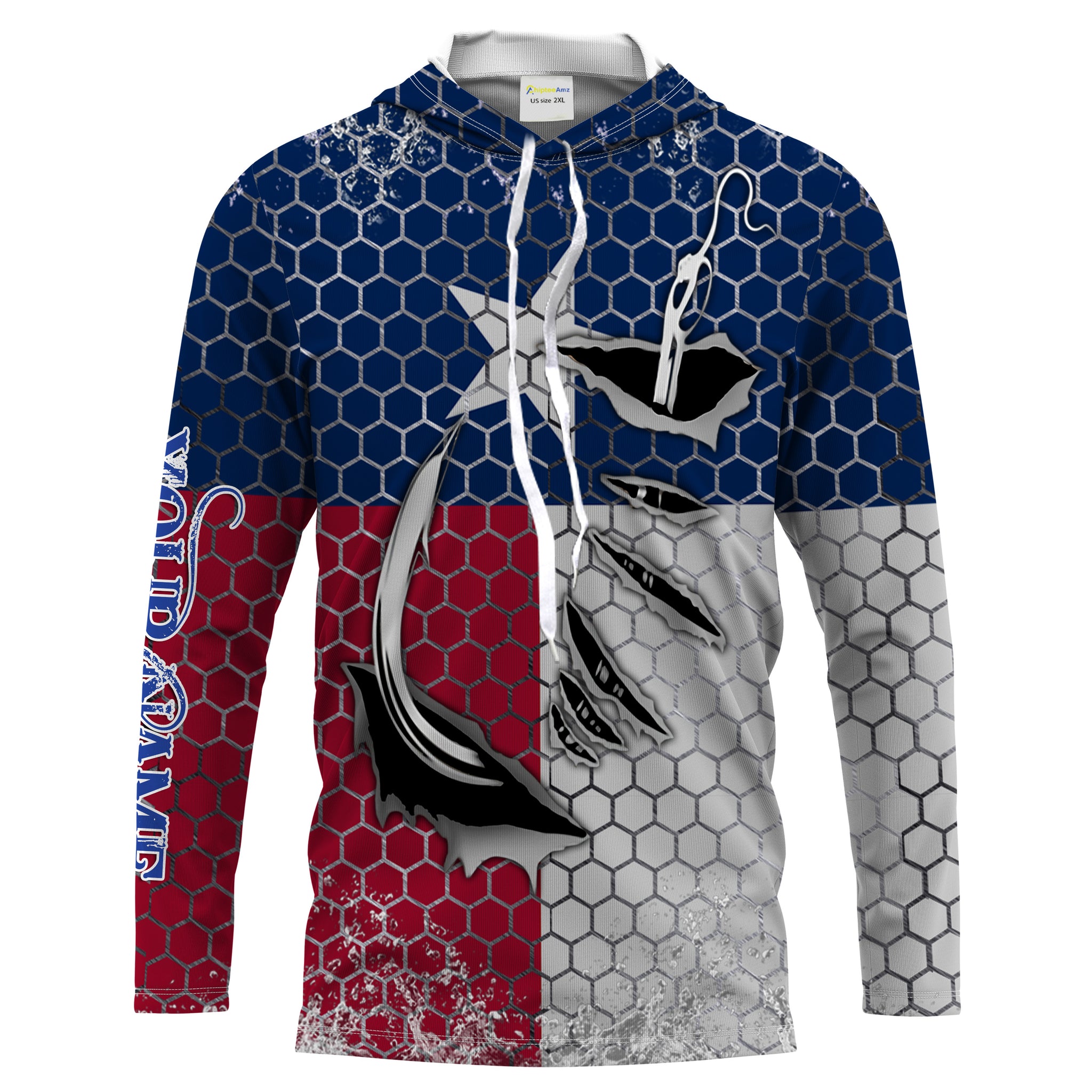 Custom Texas Flag Fishing Shirts, Texas Fish hook Long sleeve performance Fishing Shirts - IPHW1556
