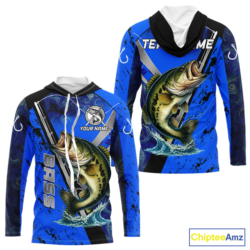 Blue Camo Bass fishing custom Largemouth Bass sun protection long sleeve fishing shirts for Team NQS10816