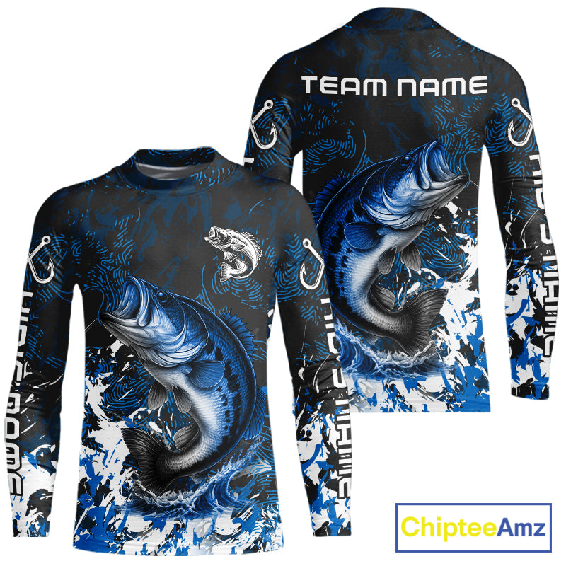 Blue Camo Largemouth Bass fishing Custom sun protection Bass fishing shirts, Bass fishing team jerseys NQS9994