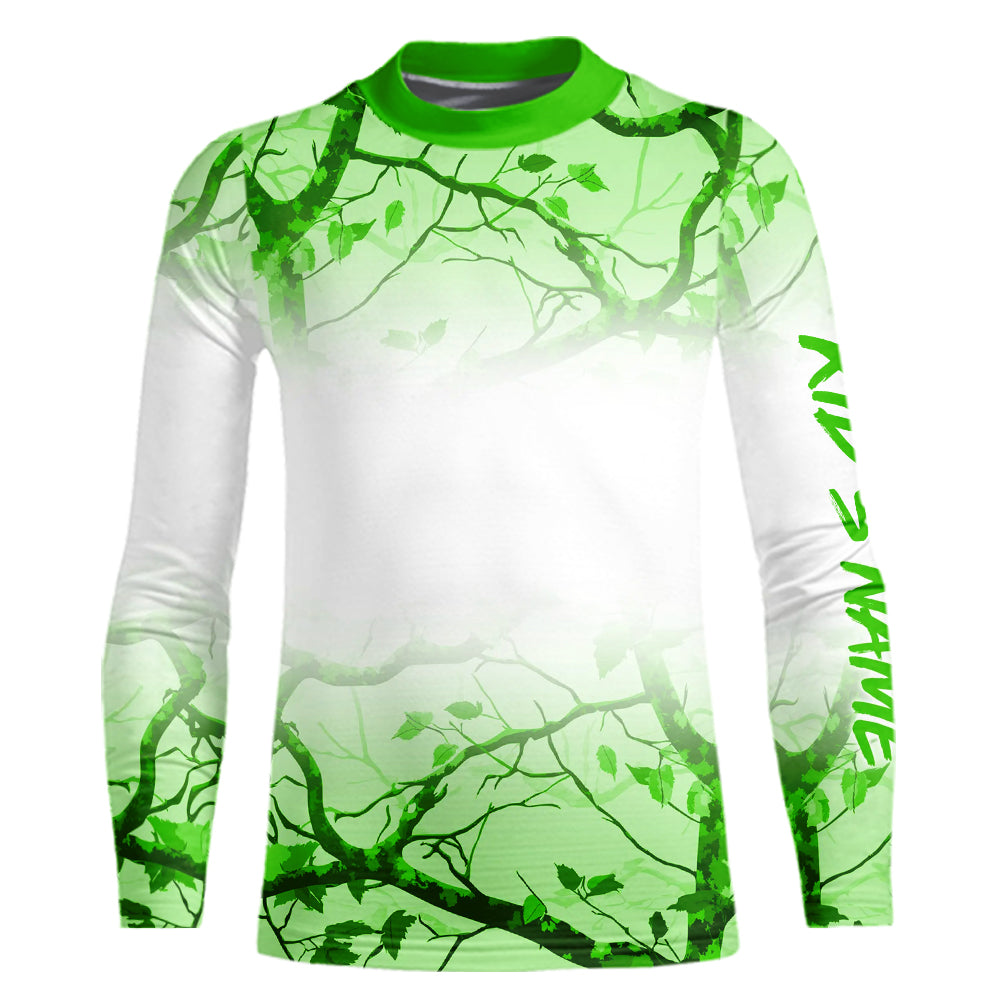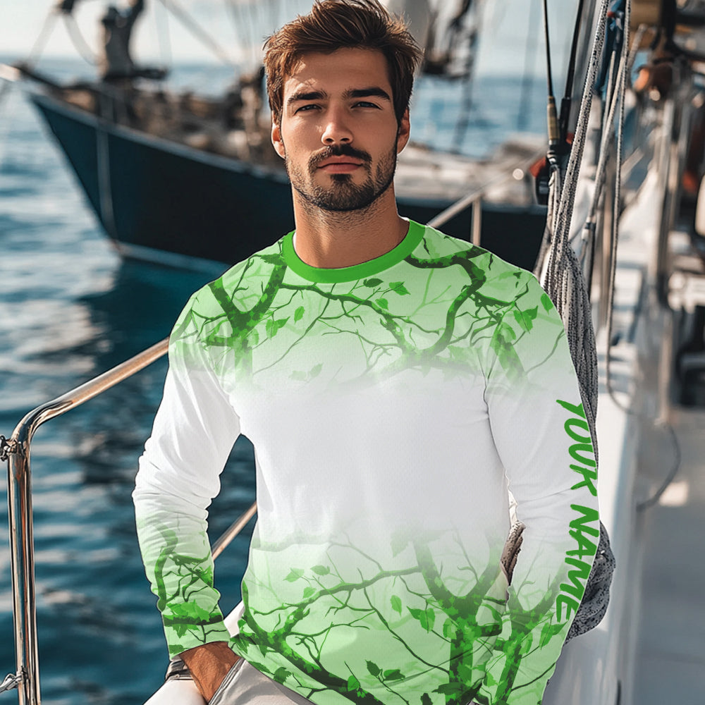 Personalized name White and Green Camo performance long sleeve team fishing tournament shirts NQS9554