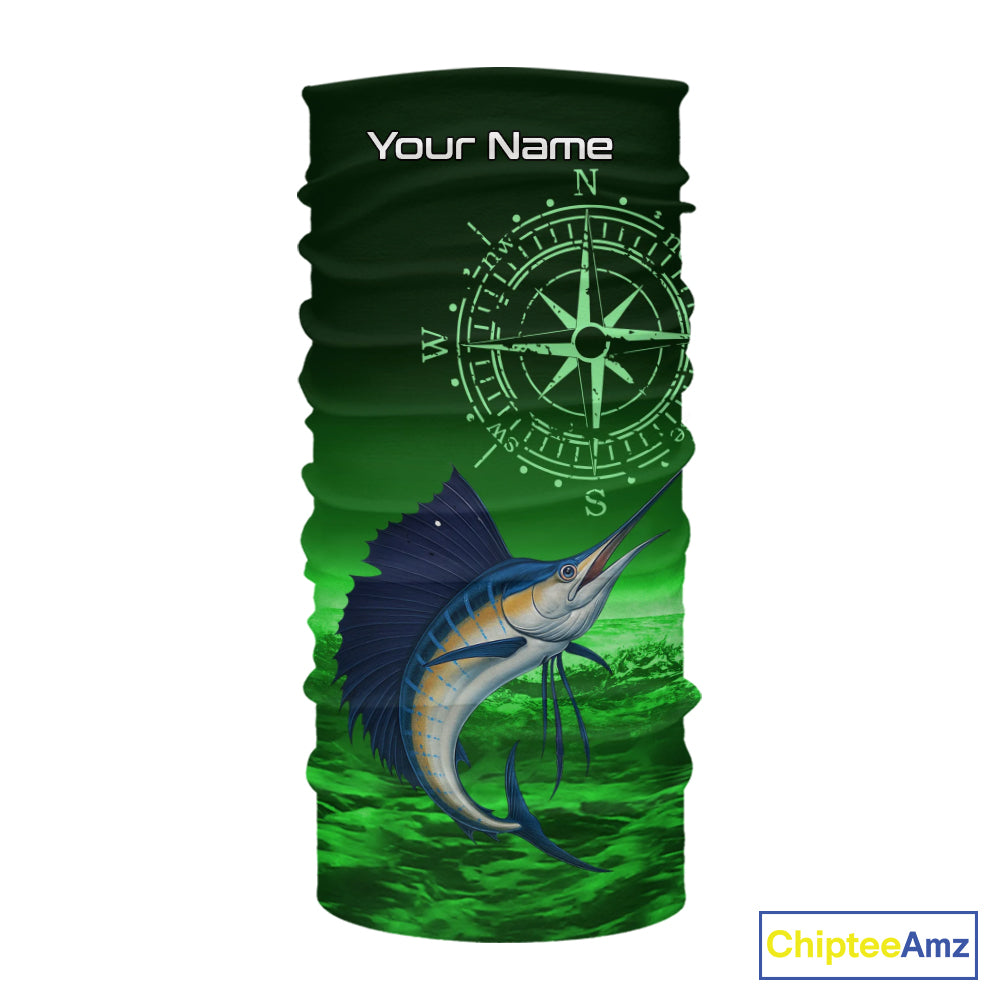 Personalized Sailfish Green Performance Fishing Shirts, compass Sailfish fishing tournament Shirts NQS10235