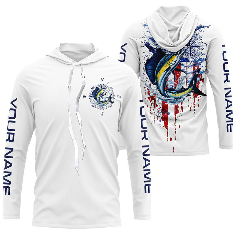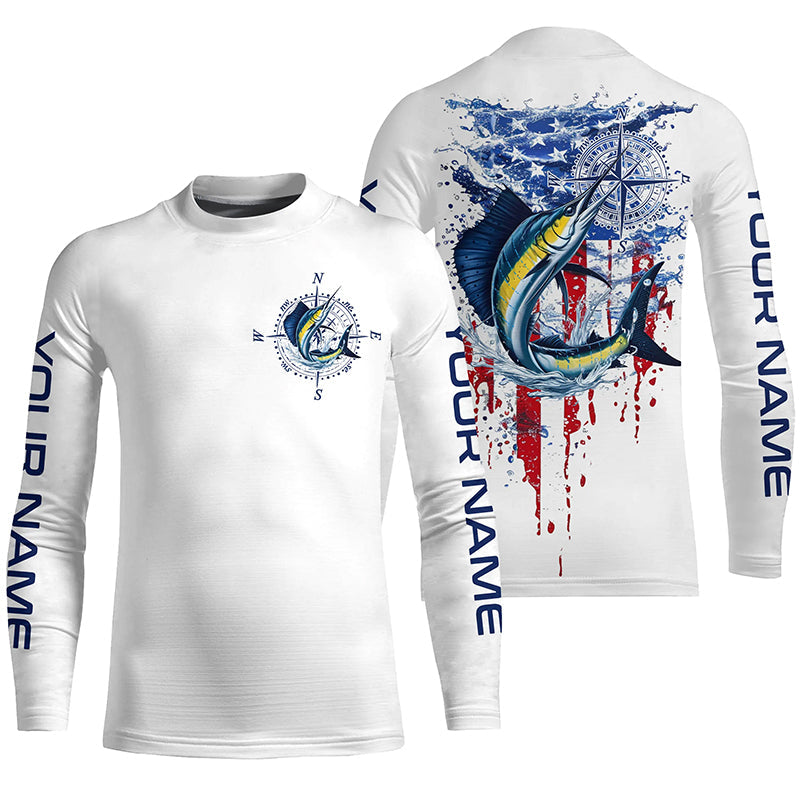 American Flag Sailfish Fishing Custom Long Sleeve Fishing Shirts, Patriotic Saltwater Fishing Shirt IPHW7038
