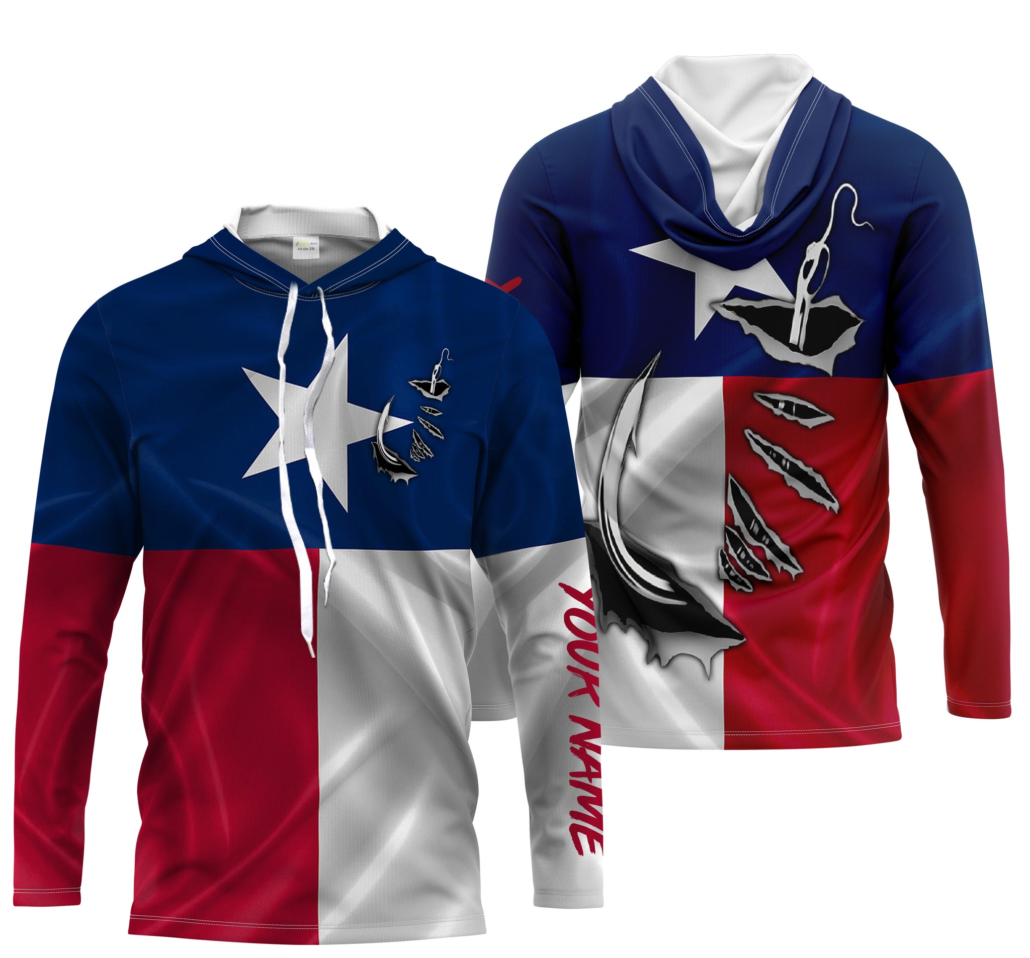 TX Fishing 3D Fish hook Texas Flag Patrotic Custom Long Sleeve performance Fishing Shirts gifts - IPHW1381
