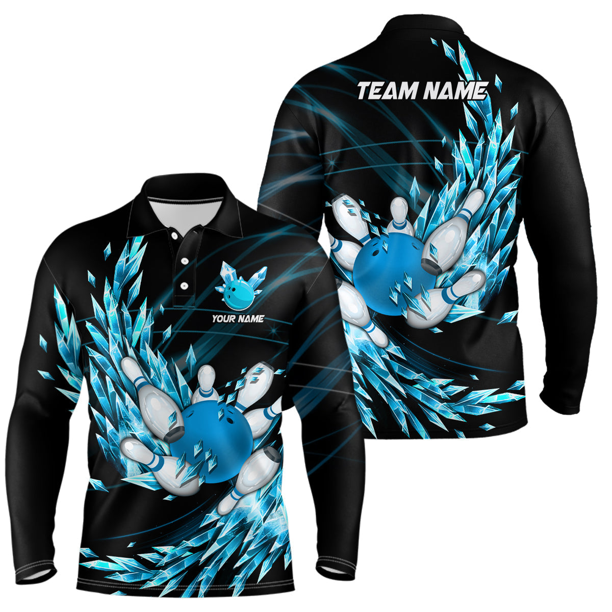 Mens polo bowling shirts Custom blue icy fragments Bowling ball pins Team league bowler Jersey NQS7124