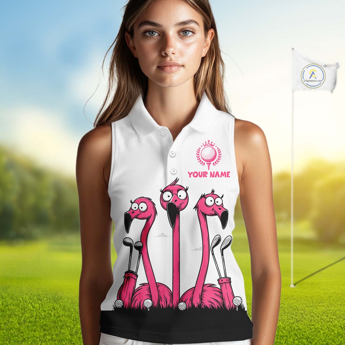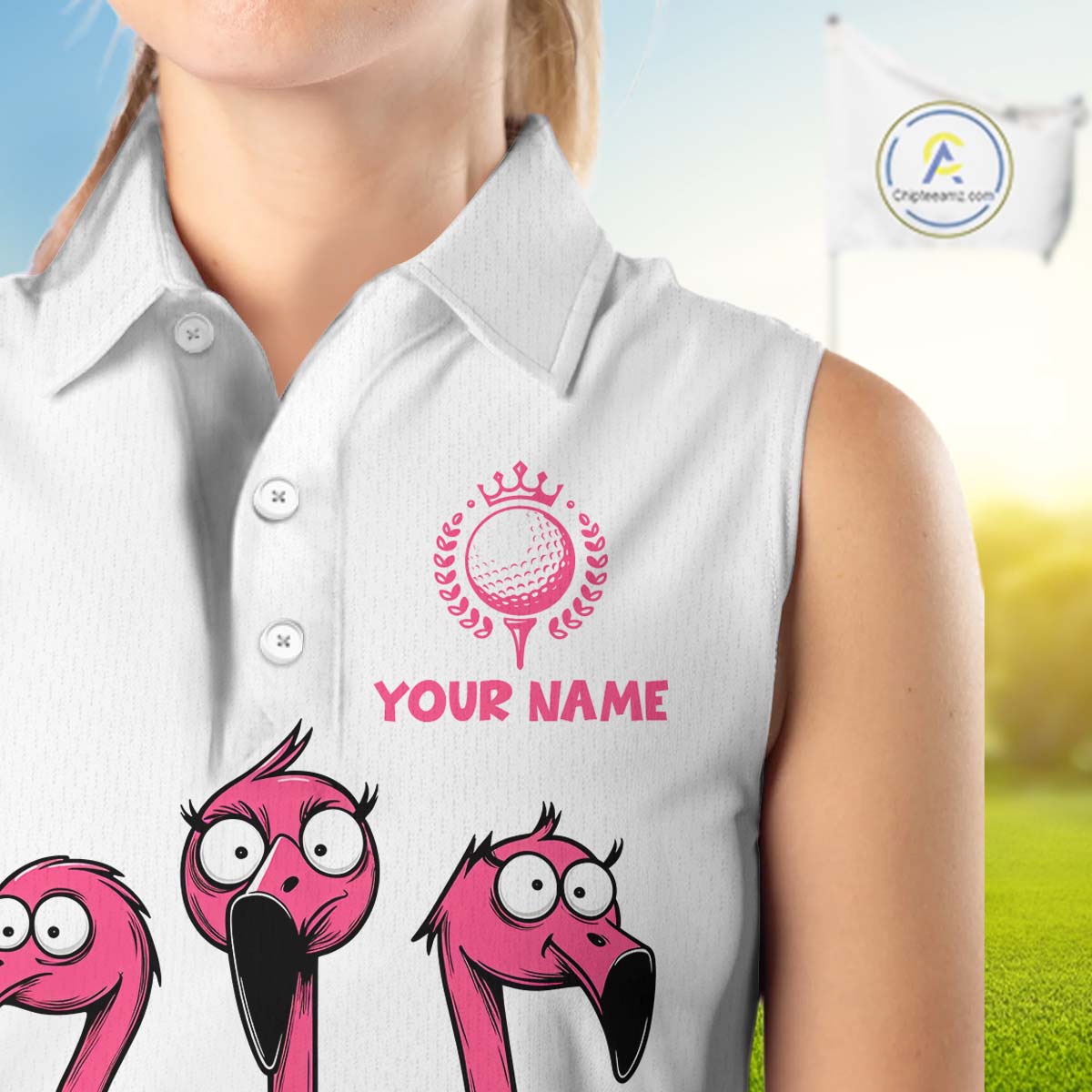 Funny pink flamingo friends white Women sleeveless polo shirt Custom flamingo ladies golf outfits NQS10201