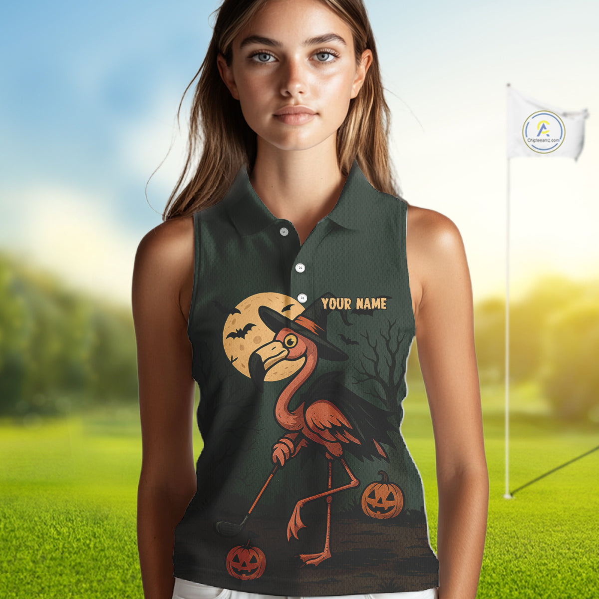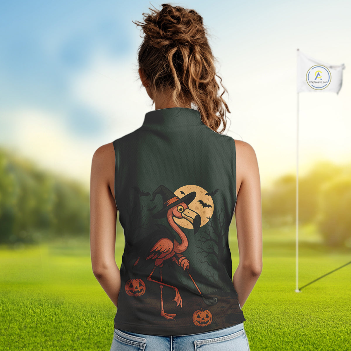 Halloween flamingo Women Sleeveless Polo Shirt custom Halloween golf top for ladies, unique golf gift NQS10378