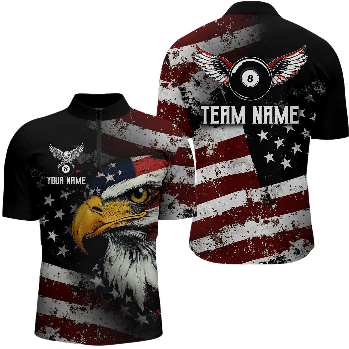 American Flag Billiard Shirt Funny Eagle Billiard Jersey Billiard for Men Polo & 1/4 Zip Shirt NNT06