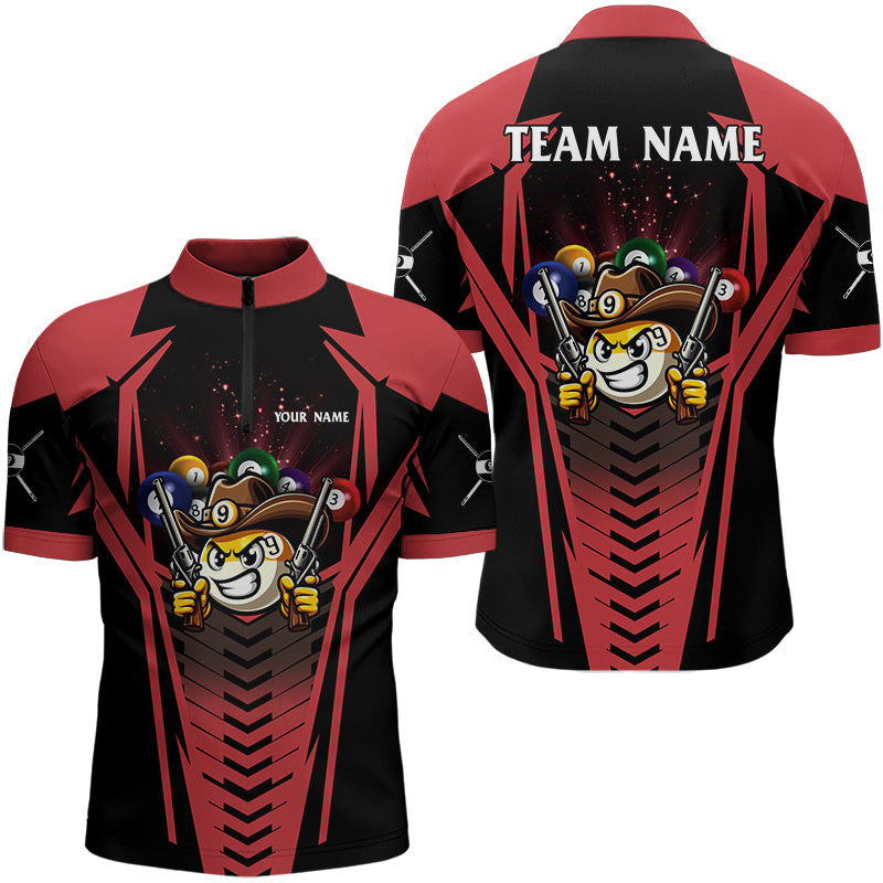 Personalized 9 Ball Cowhand Billiard Shirts For Men, Funny Billiard Shirts Billiard Jerseys |Red TDM3104