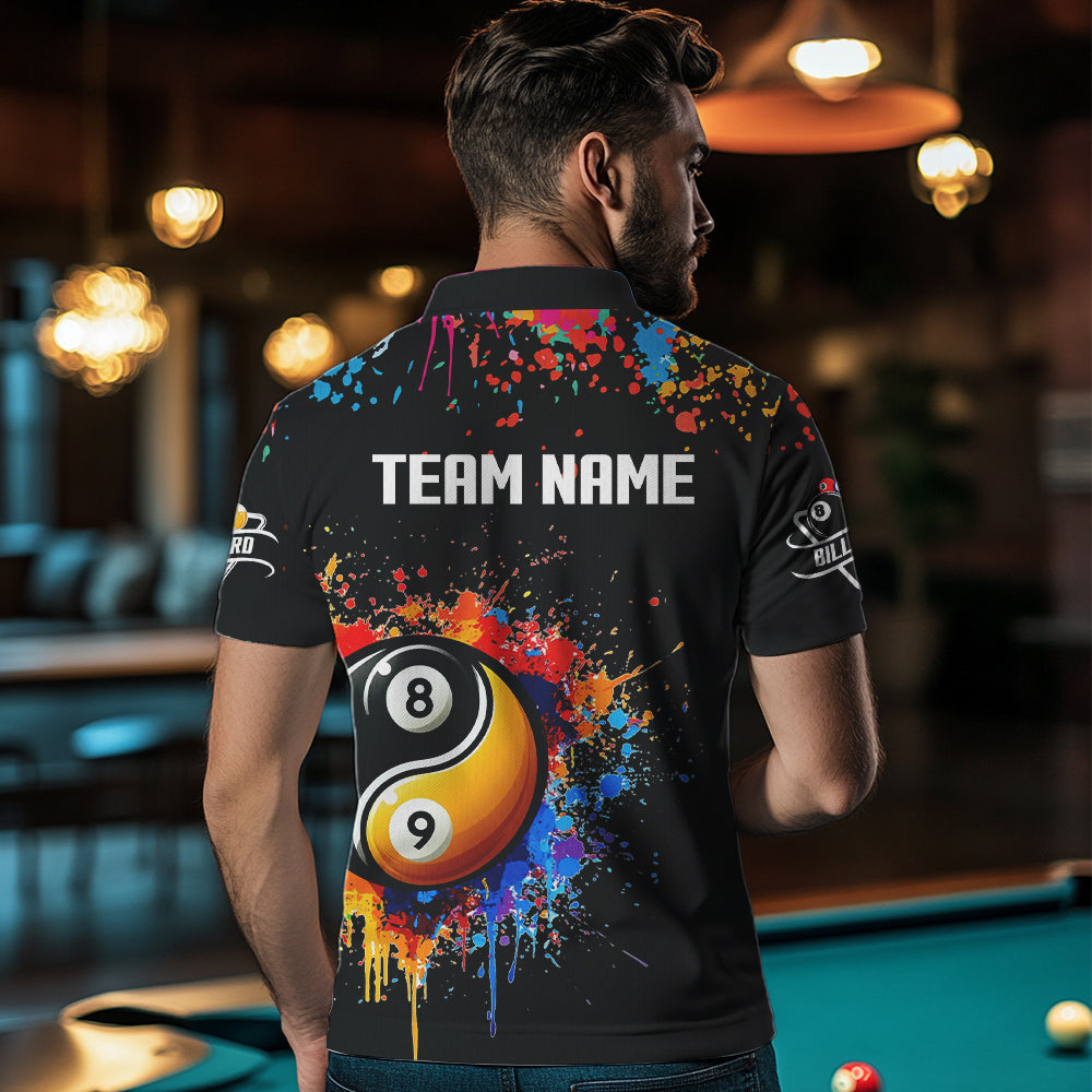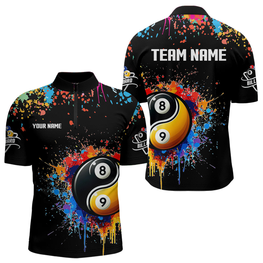 Funny Ying And Yang 8 Ball & 9 Ball Colorful Splash Custom Billiard Shirt For Men, Billiard Jersey TDM3703