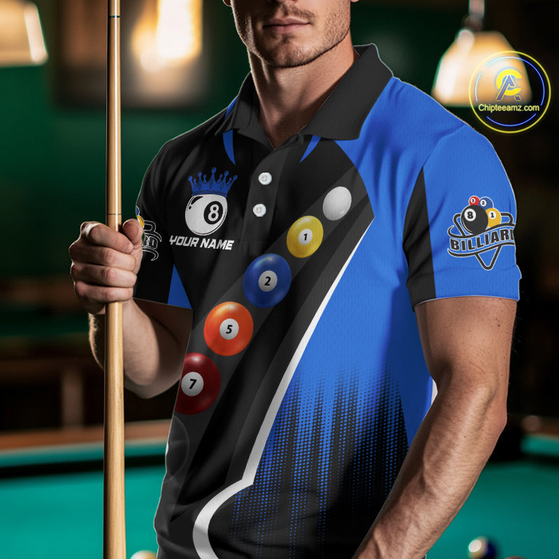 Personalized Black Blue Billiard Shirt For Men Custom Funny Pool Balls Team Jersey Polo & 1/4 Zip TDM4497