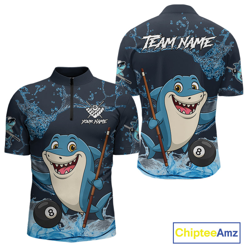 Blue Funny Shark 8 Ball Pool Billiard Shirt For Men Custom Billiard Team Jersey Polo & 1/4 Zip TDM4871