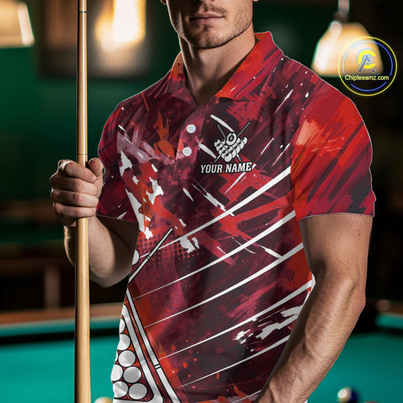 Red Grunge US Flag Billiard Shirt For Men Custom 8 Ball Pool Team Shirt, Funny Billiard Jersey TDM4970