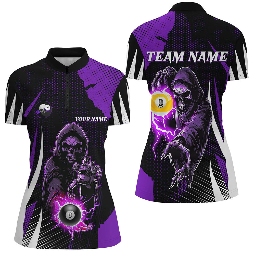 Funny Purple Death Skeleton 8 Ball & 9 Ball Billiard Shirts For Women Custom League Billiard Jerseys TDM2285