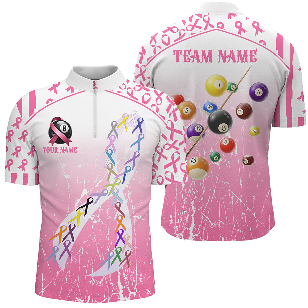 Colorful Ribbon Custom Pink Billiard Shirts For Men, Funny Breast Cancer Shirts Gift For Pool Lover TDM2367
