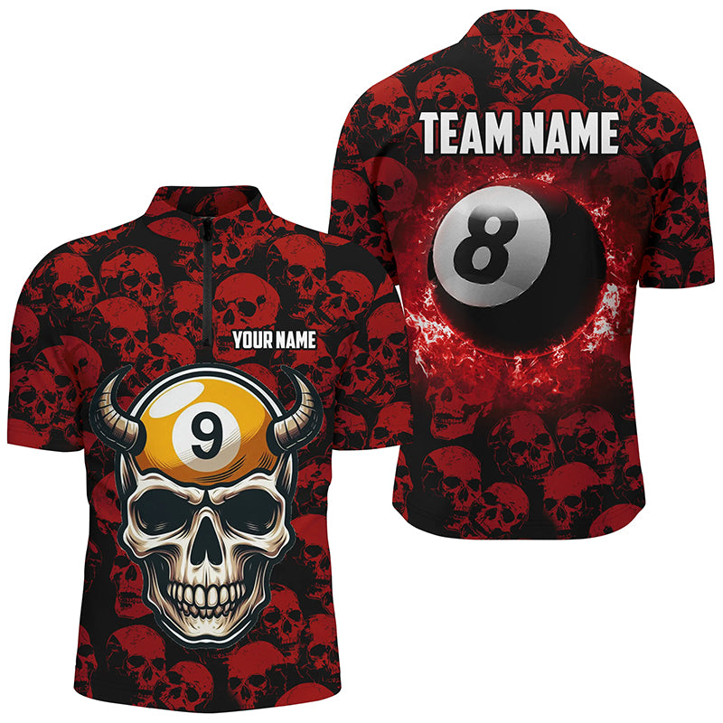 Personalized Billiard Jersey 8 & 9 Ball Custom Funny Skull Pattern Billiard Shirts For Men |Red TDM2370