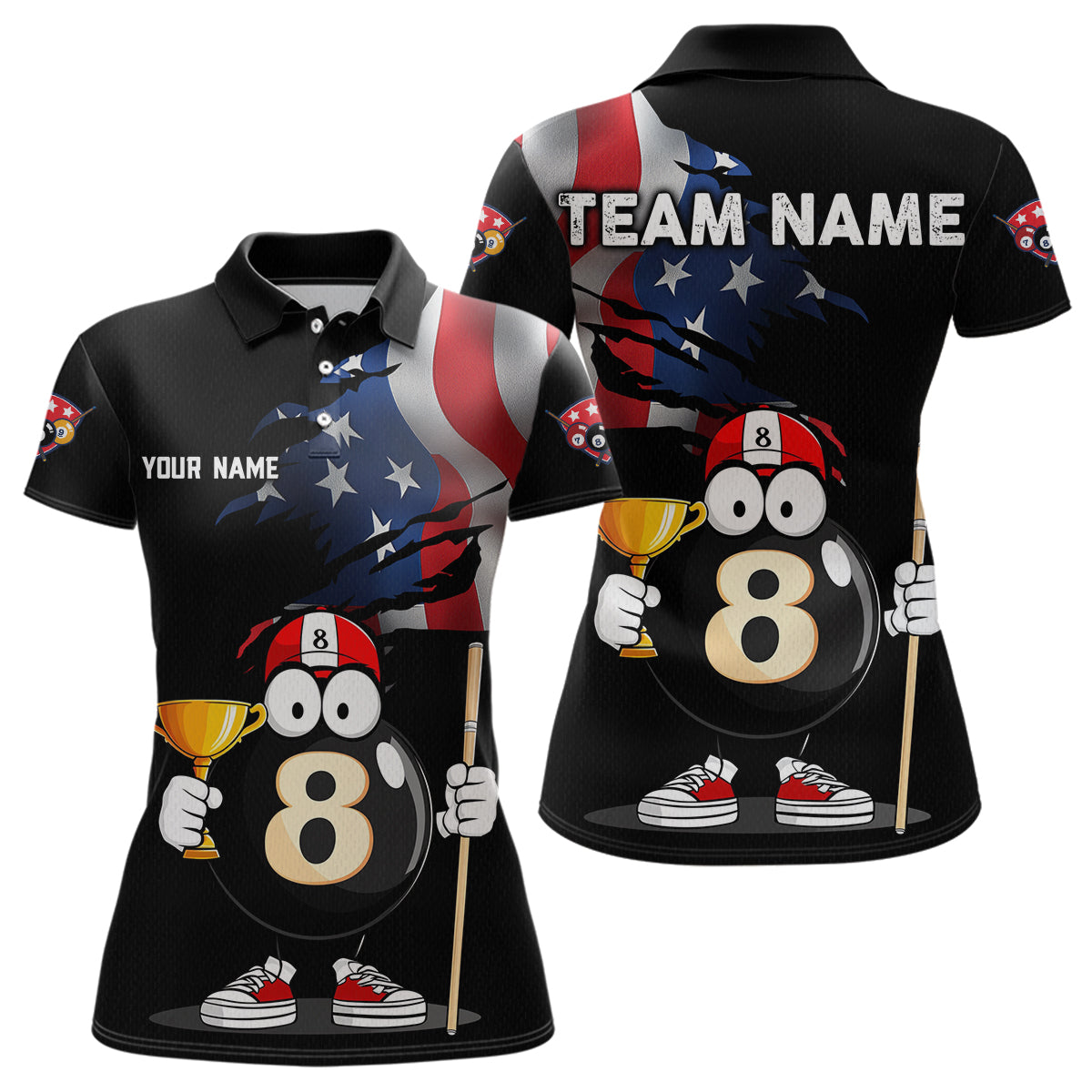 US Flag Funny 8 Ball Billiard Jersey Women Billiard Shirt for Men Team Polo & 1/4 Zip NNT12