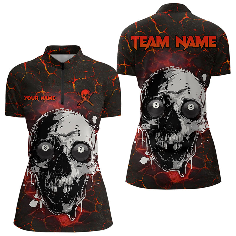 Personalized Red Crack Grunge Skull Women Billiard Shirts, Funny Billiard Shirts Pool Team Jerseys TDM3224