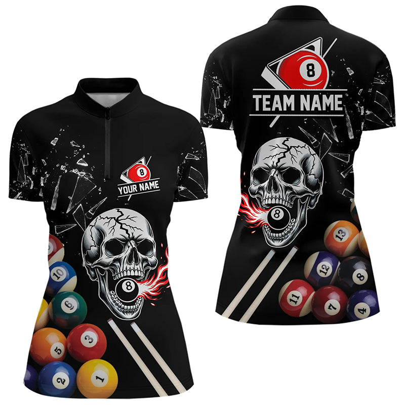 Personalized Break Glass Skull Billiard Shirts For Women Custom Funny 3D Pool Balls Billiard Jerseys TDM3279