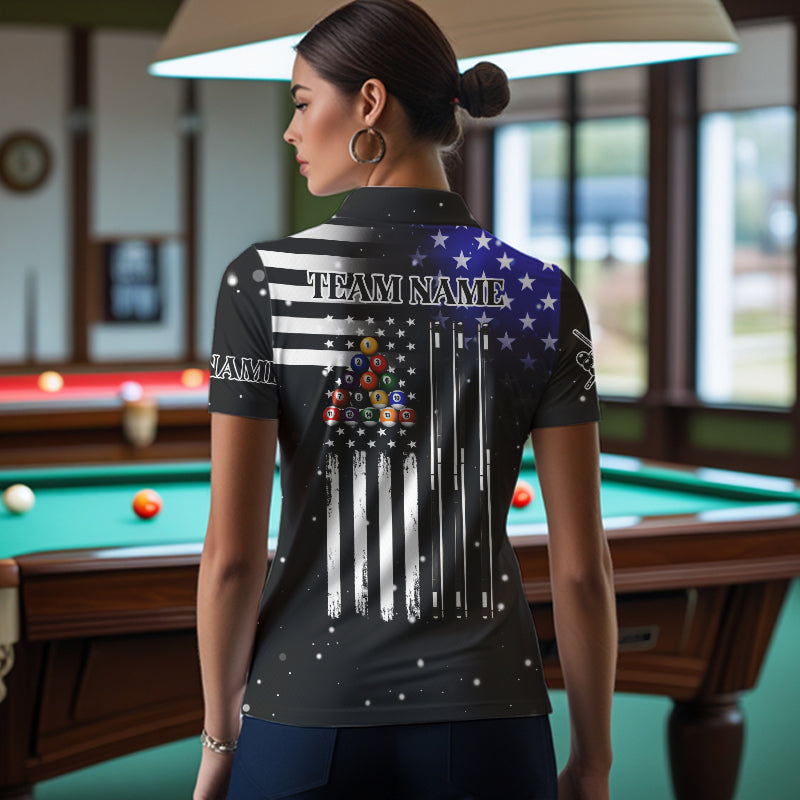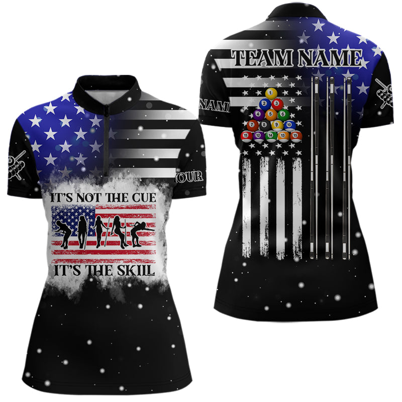 It's The Skill Custom American Flag Women Billiard Shirt Funny Billiard Jersey|Black TDM3571