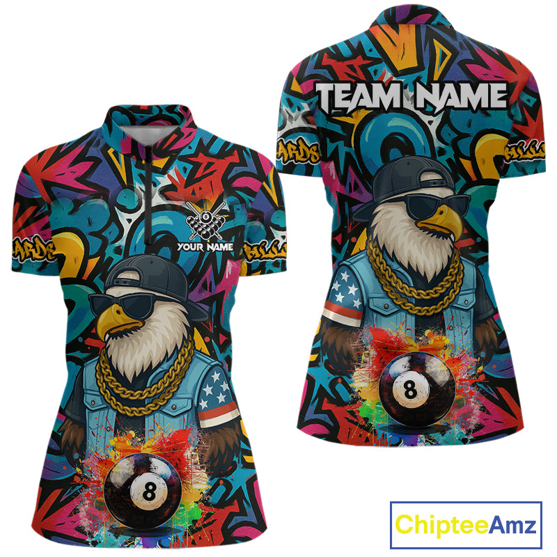 Funny Eagle Colorful Graffiti 8 Ball Billiard Shirt For Women Custom Billiard Jersey Pool Team Shirts TDM3854