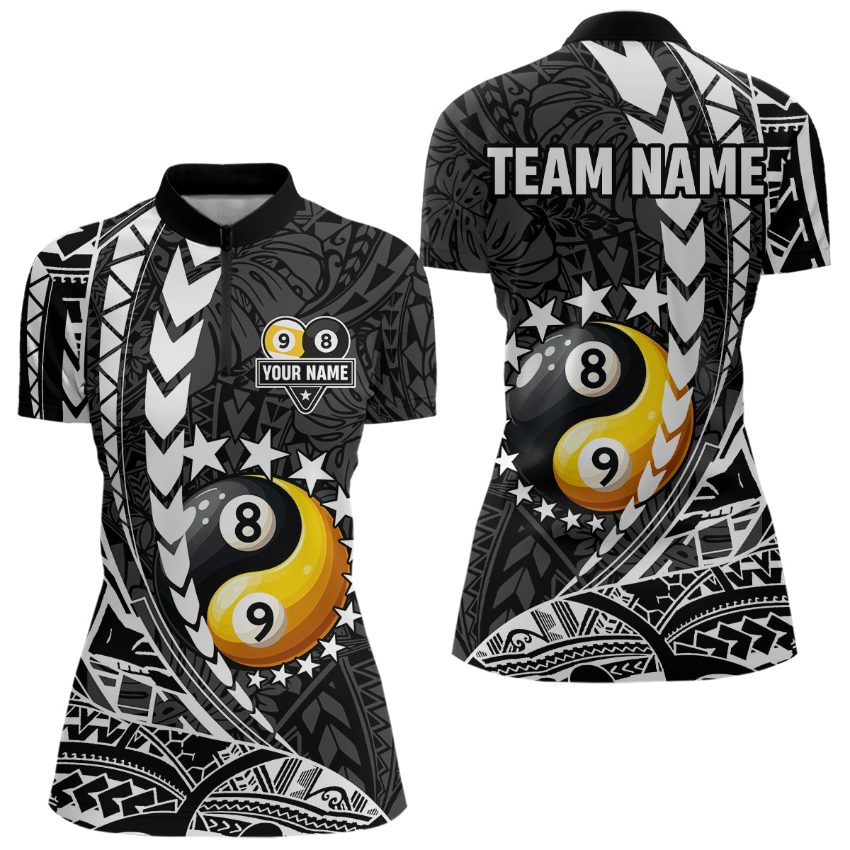 Custom White Black Tribal Yin-Yang 8 & 9 Ball Billiard Shirt For Women, Funny Pool Team Jersey TDM4687