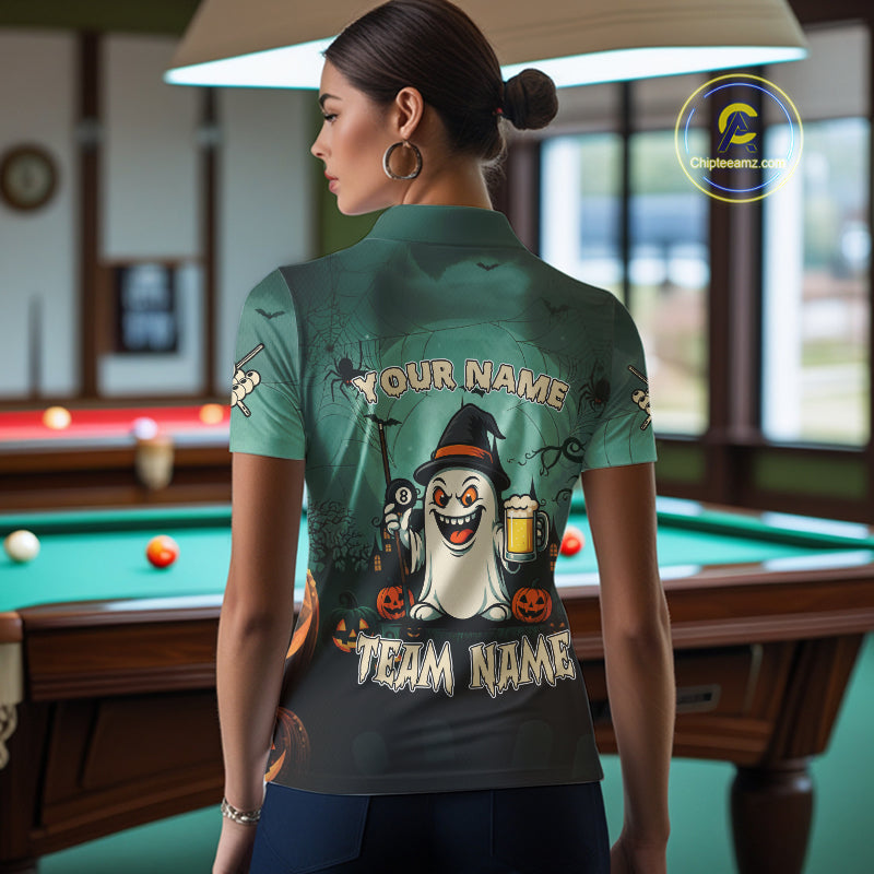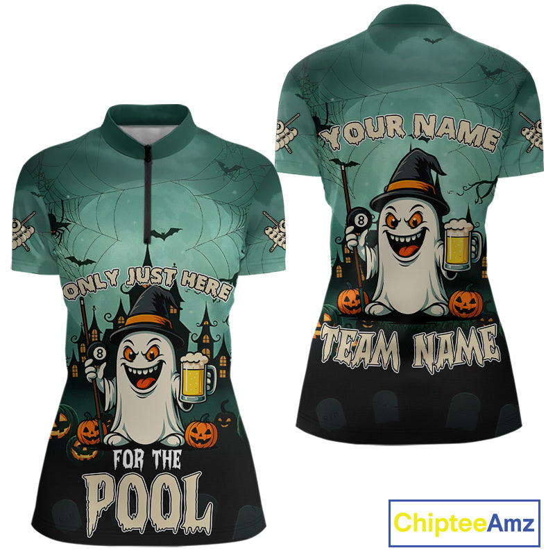 Only Just Here For The Pool Custom Halloween Billiard Shirt For Women, Funny Ghostly Billiard Jersey TDM4950