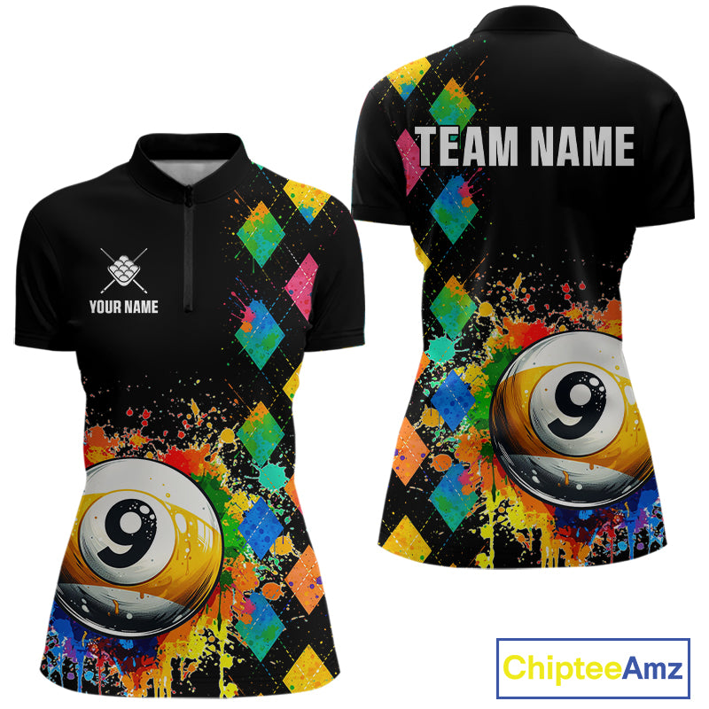 Funny 9 Ball Pool Paint Colorful Argyle Custom Billiard Shirt For Women, Best Pool Team Jersey TDM4962