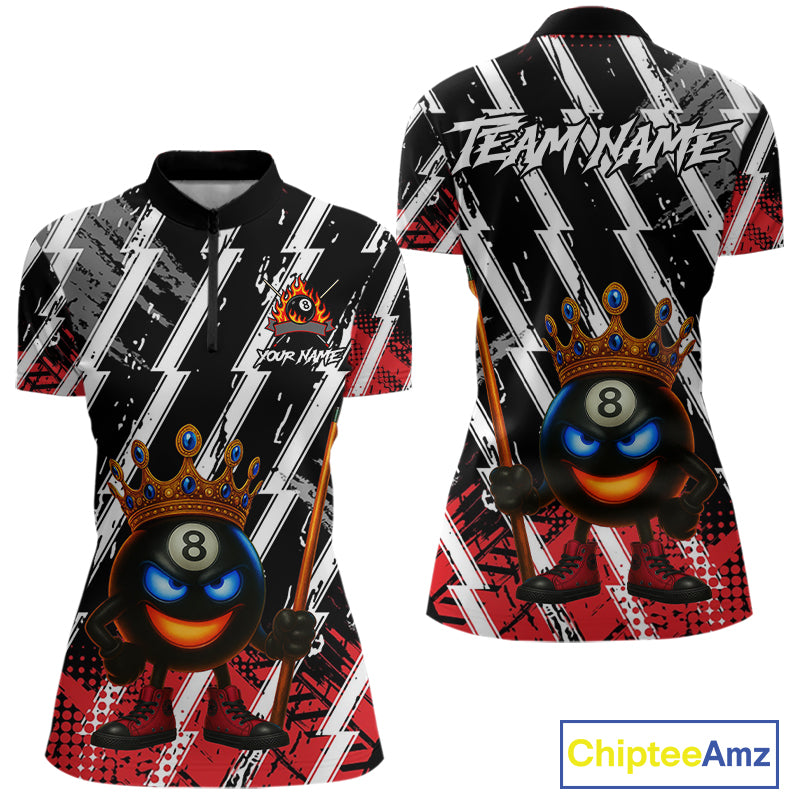 Funny 8 Ball Pool Crown Billiard Shirt For Women Custom Billiard Jersey Team Polo & 1/4 Zip |Red TDM5081