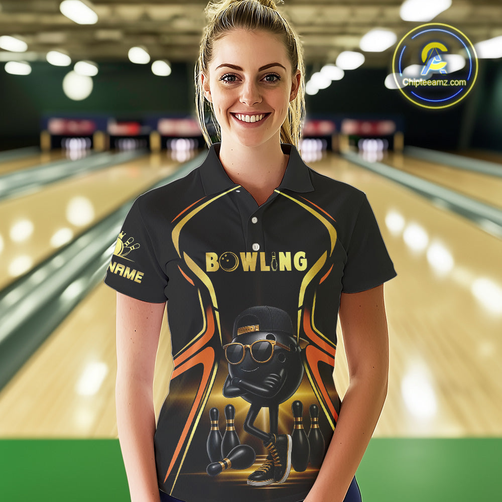 Black and Gold Funny bowling ball and pins Bowling shirts for Women Custom cool bowling team jerseys NQS10273