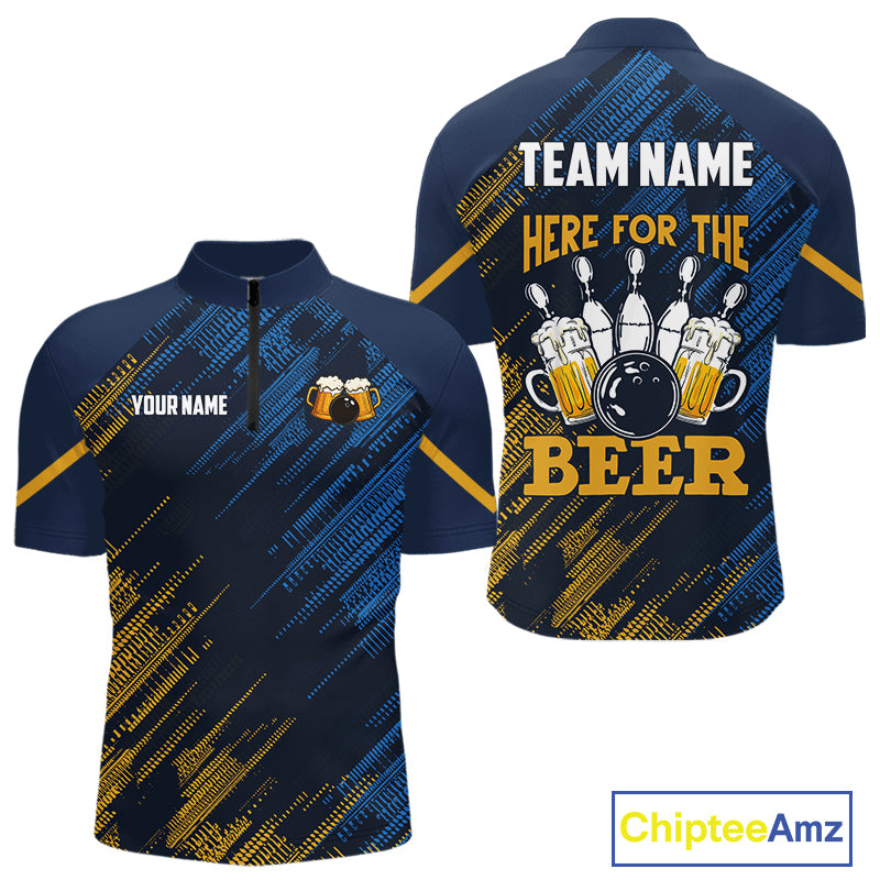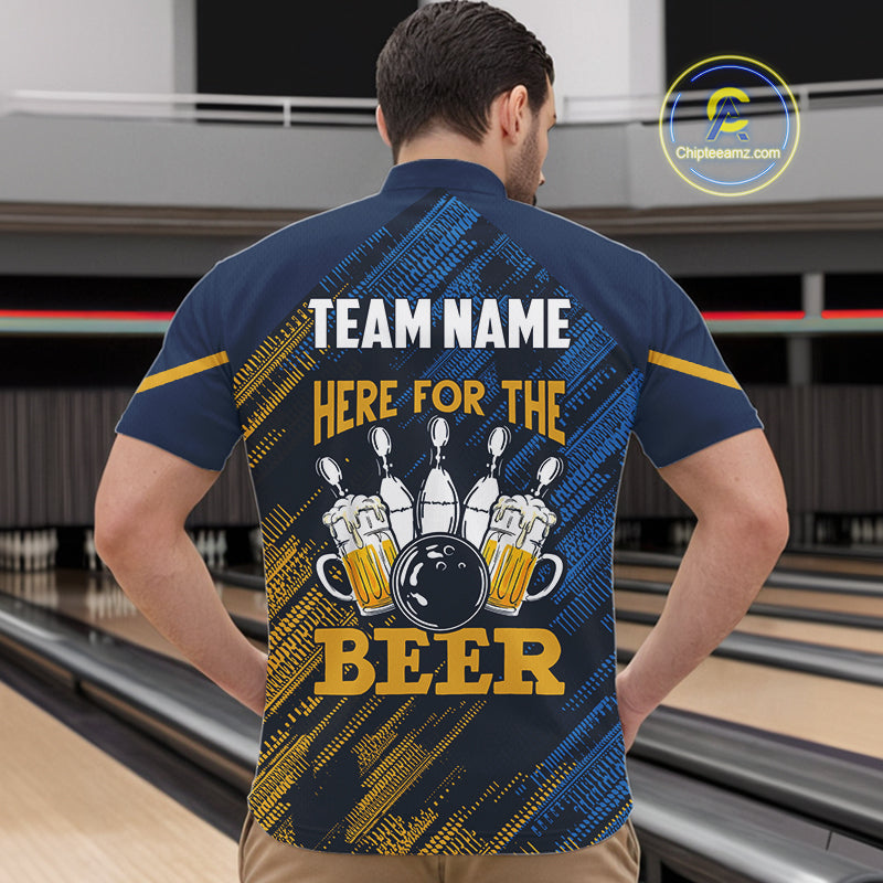 Blue and Yellow Pattern Bowling Shirt For Men Custom Here For The Beer Funny Bowling Tournament Shirt NQS10717