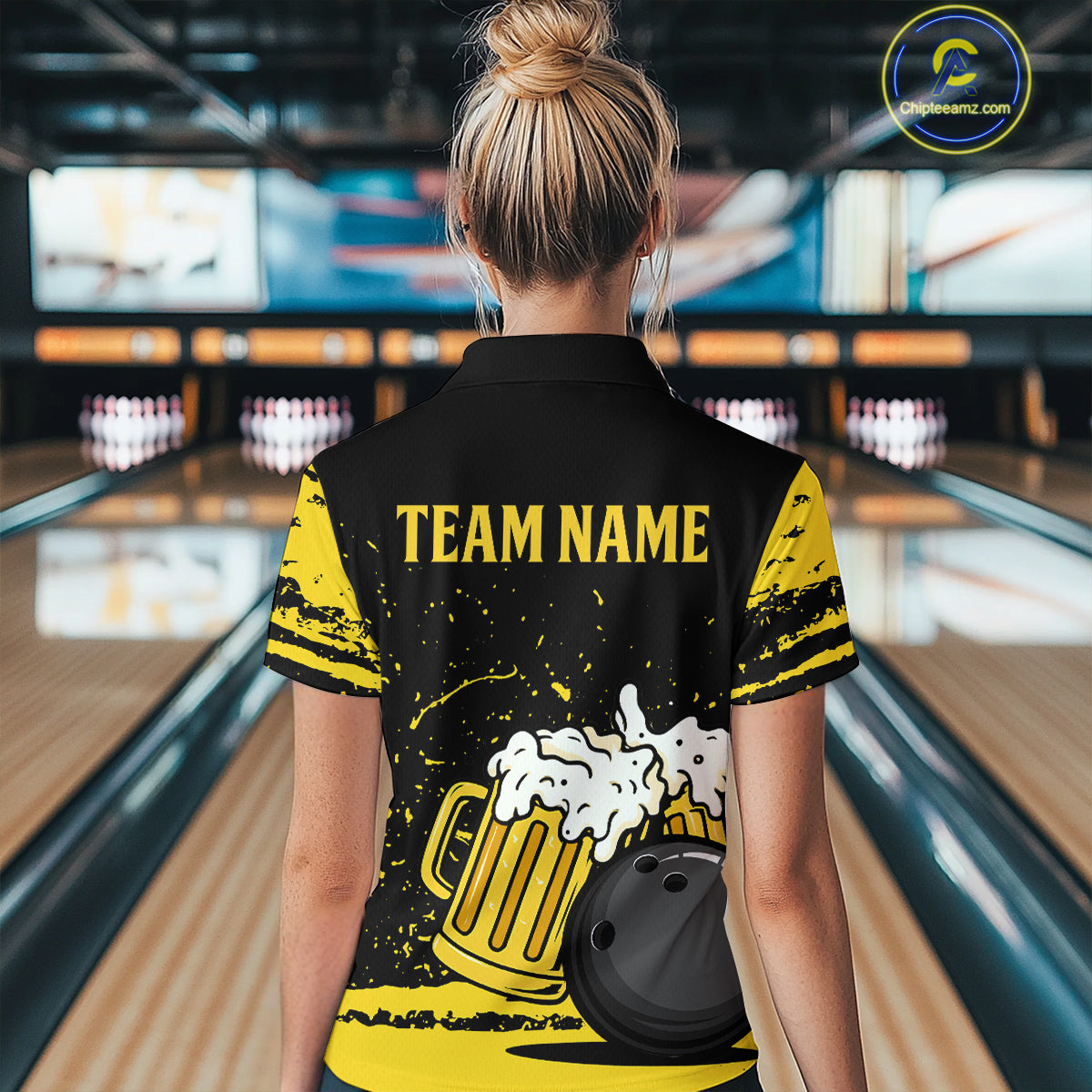 Custom Funny Beer Bowling Women Shirts Bowling Uniform Polo & 1/4 Zip Bowling Team Jerseys HNT98