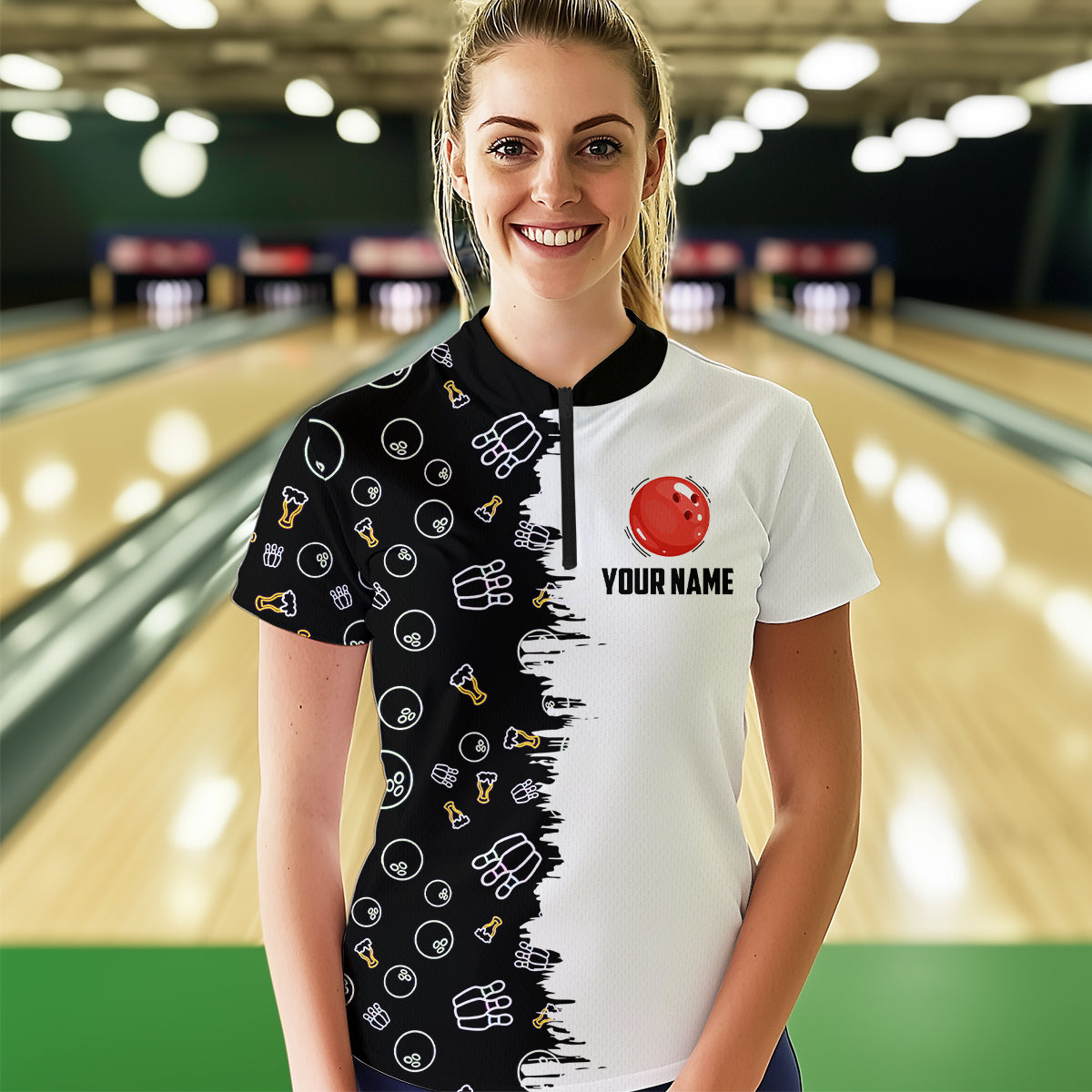 Custom Beer Bowling Shirt Funny Bowling Team League 1/4 Zip Bowling Shirt for Men QZT403