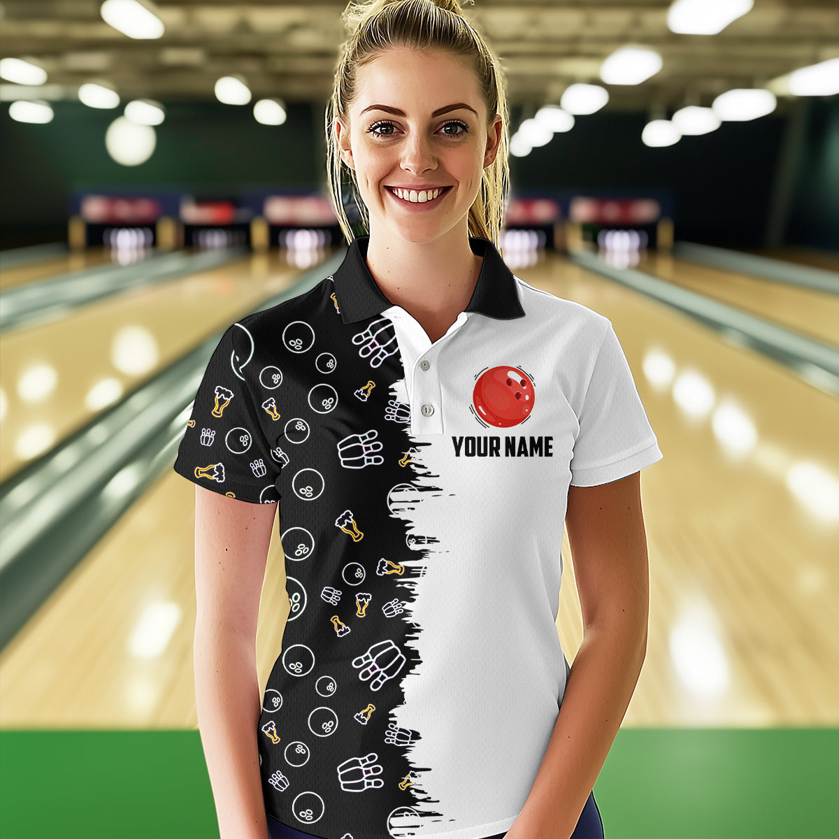 Custom Beer Bowling Shirt Funny Bowling Team League Polo Bowling Shirt for Women QZT403